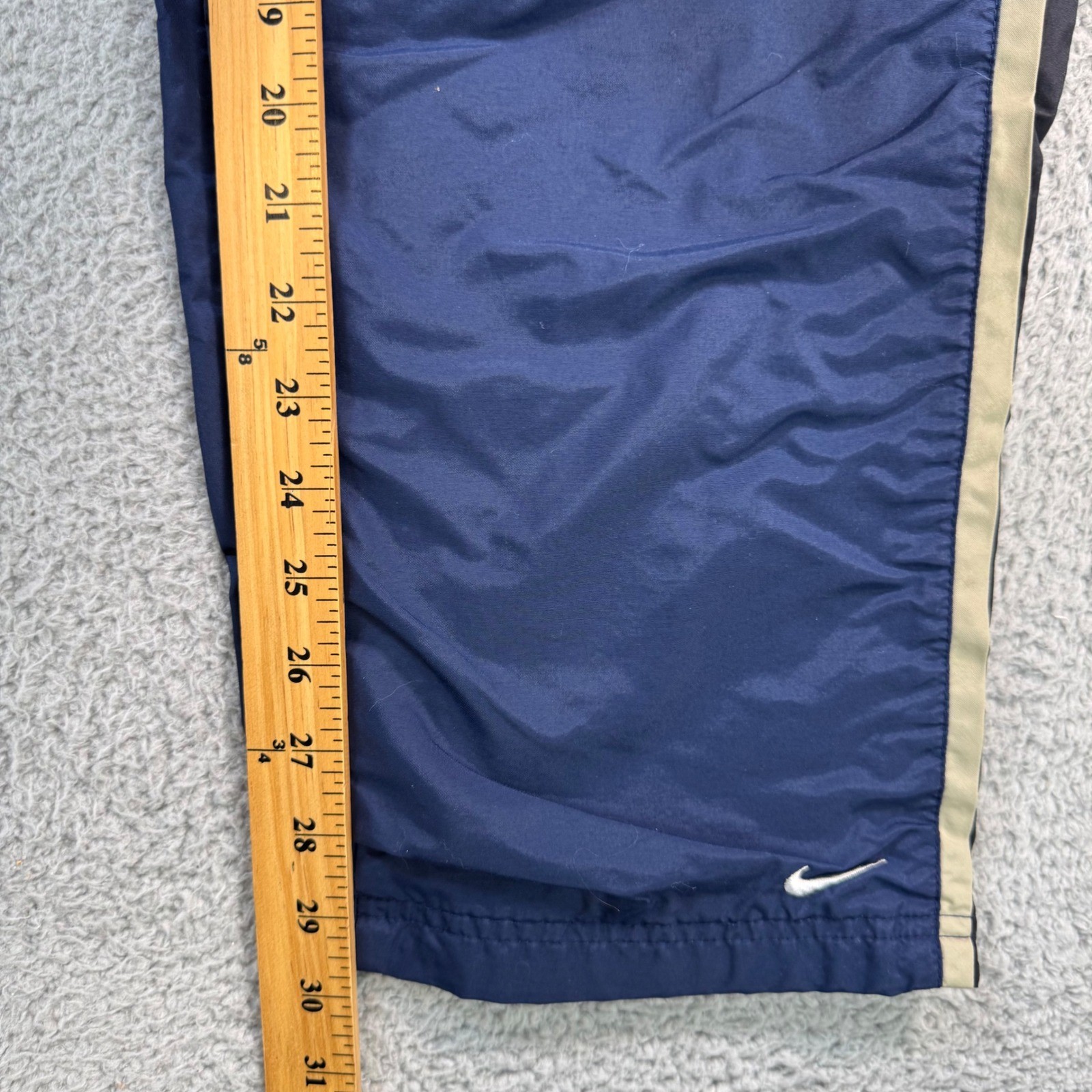 как выглядит Nike Vintage Y2K Navy Blue Nylon Windbreaker Track Pants Mens Medium Side Stripe фото