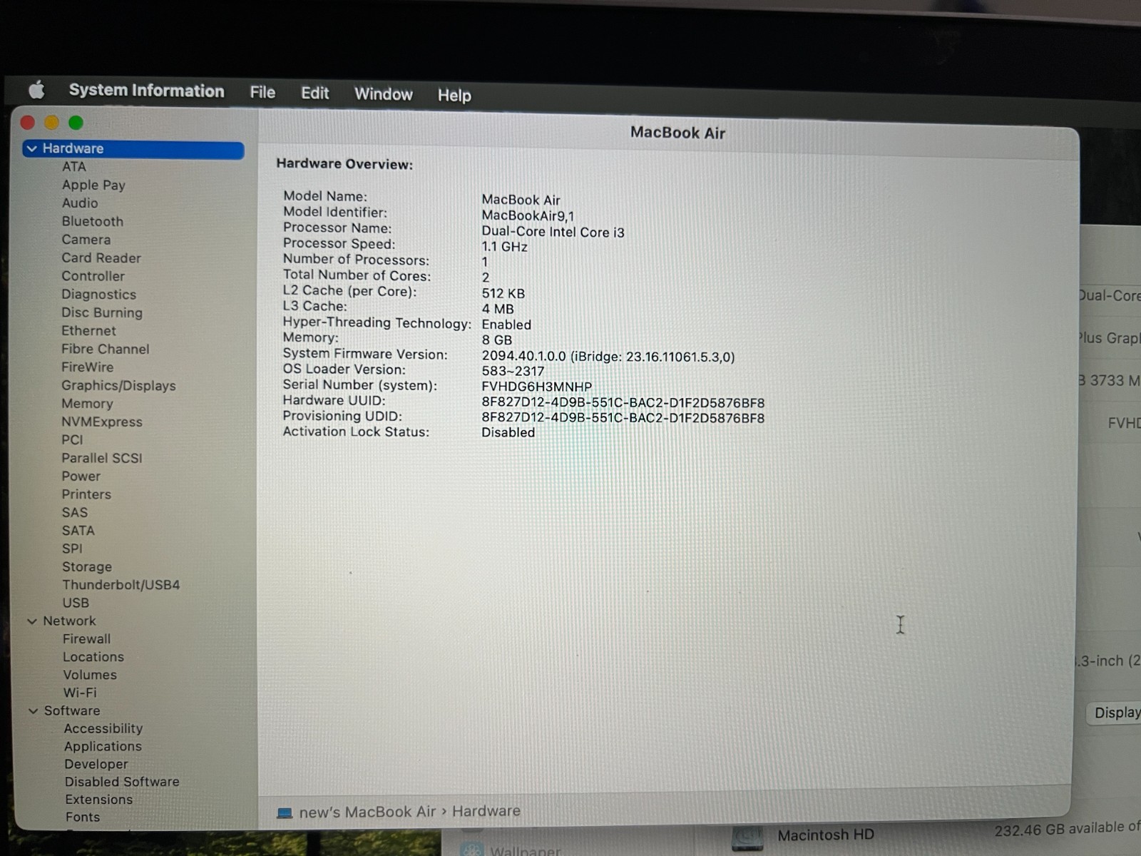 MacBook Air Retina 13 2020 8GB 256GB Good Condition A2179