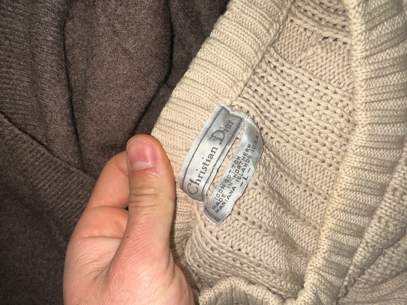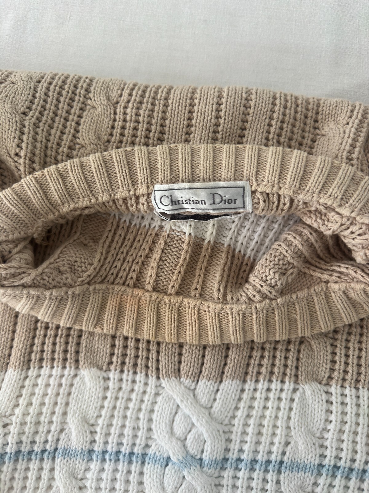 как выглядит Rare Christian Dior Vintage Hand Knit Cotton Cable Pullover Sweater Size L фото