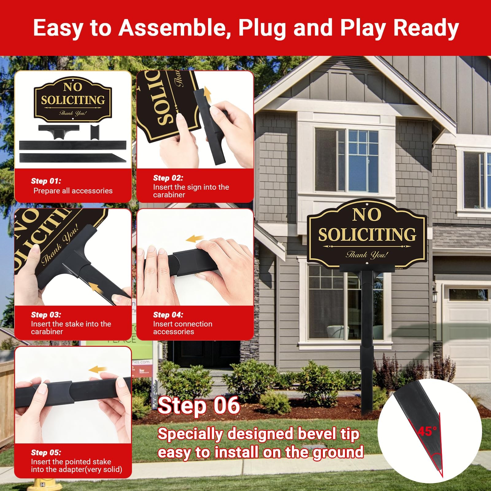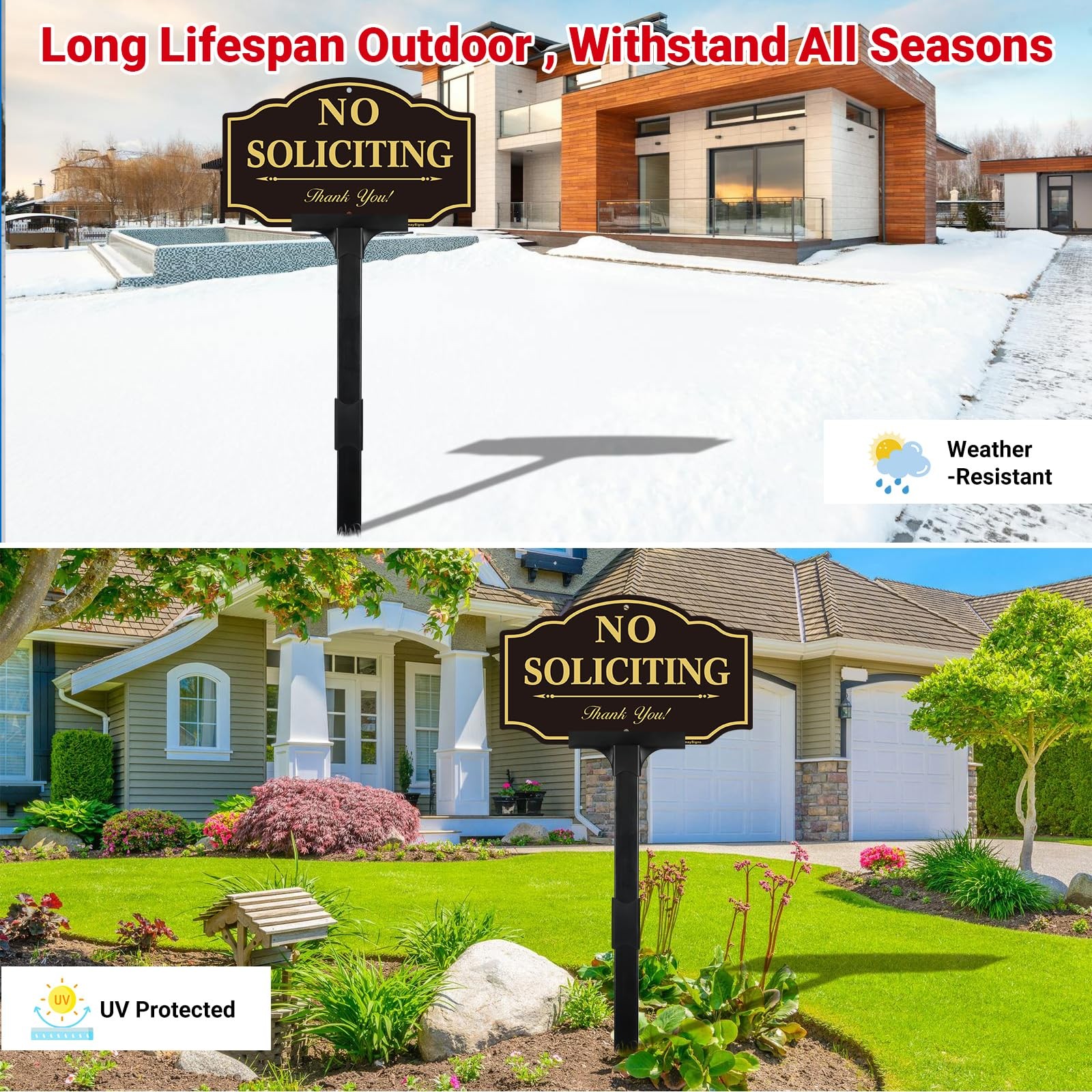 No Soliciting 38x10Inch, GoIden-38x10 Sign with Stake -1Pack