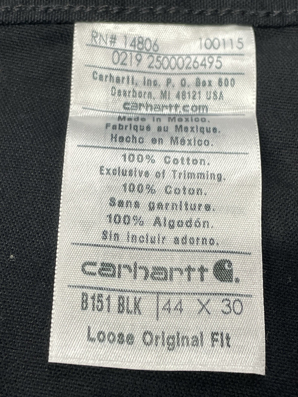 как выглядит Carhartt Mens 44x30 Black Canvas Carpenter Work Pant Relaxed Fit CC28 NW/OTs фото