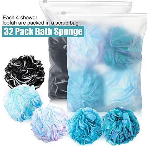 32 Pcs Bath Sponge Loofahs Set - Charcoal Body Scrubber, Soft Exfoliating Puff B