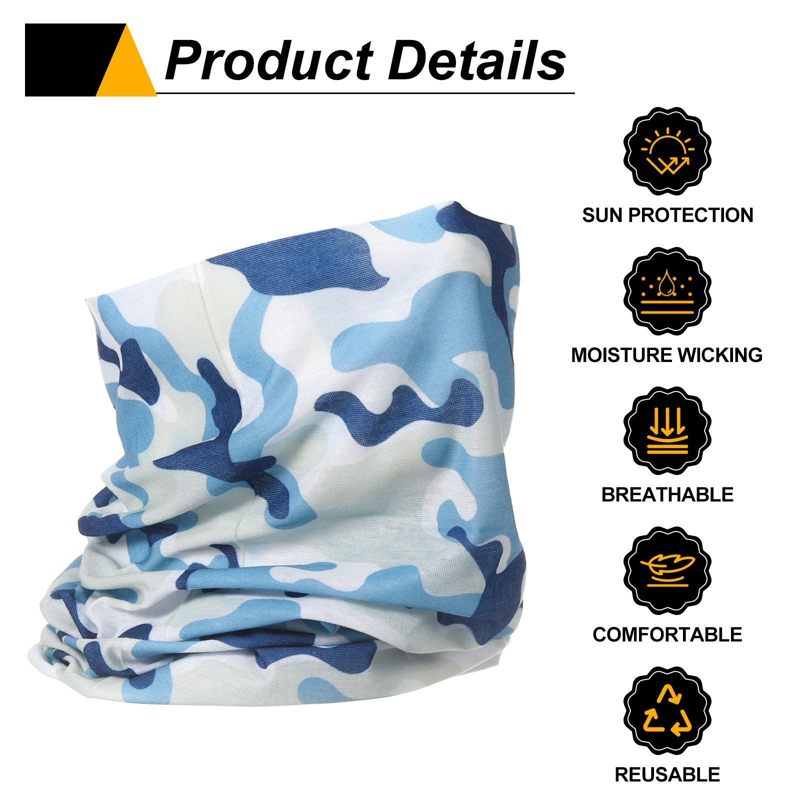2pcs Summer Cooling Neck Gaiter Sun Protection Face Mask, Camo Blue-white