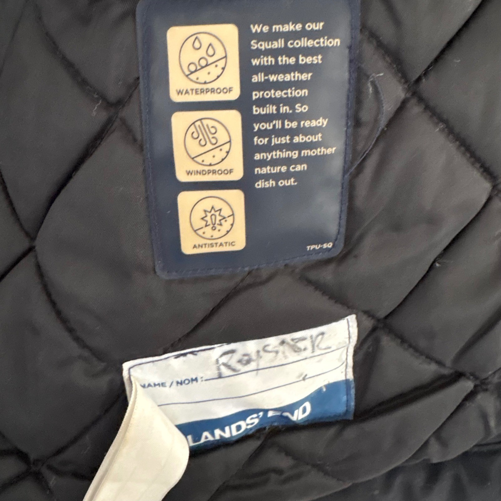 Lands End Boys Squall Parka Black Waterproof Winter Jacket Hooded L 14-16 Fleece