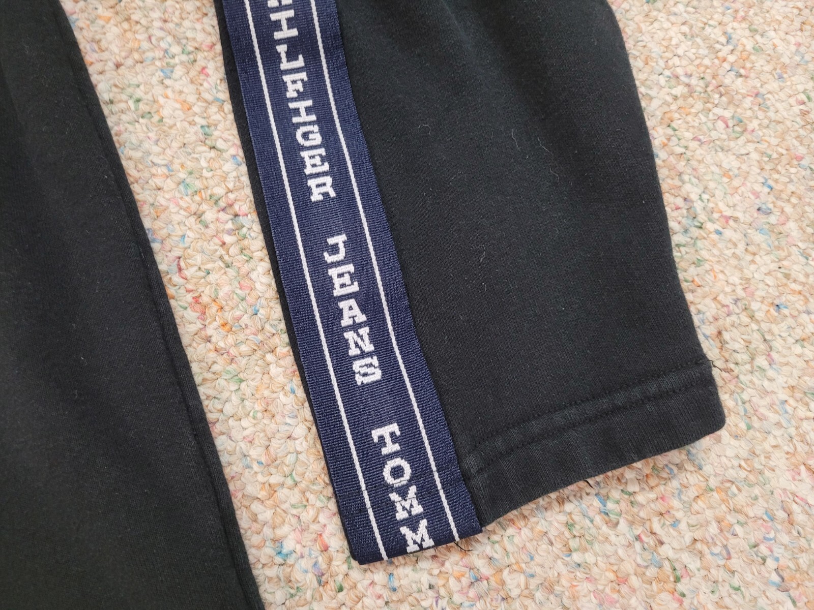 Vintage Tommy Hilfiger Sweater Men XL Black Sweatshirt Tape Logo Pullover Preppy