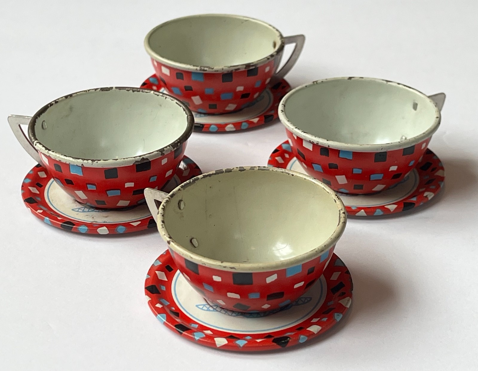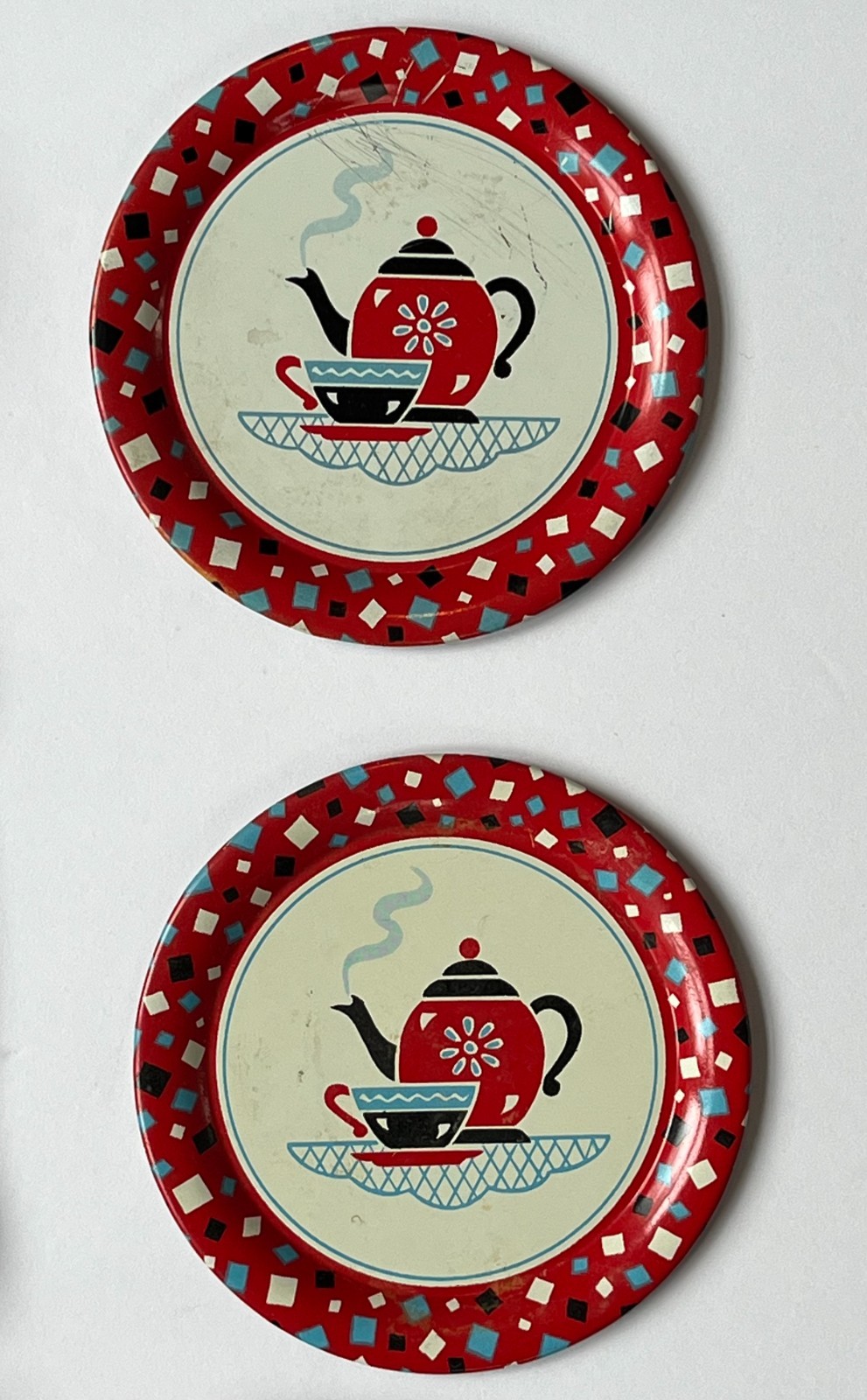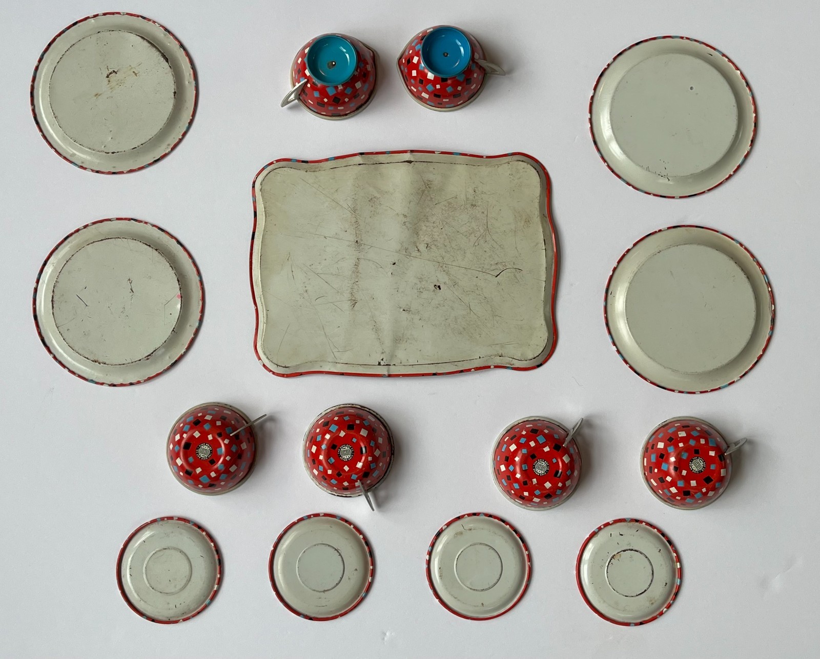 как выглядит VINTAGE OHIO ART Tin Litho Childs Tea Set COFFEE TIME 15 Pieces фото