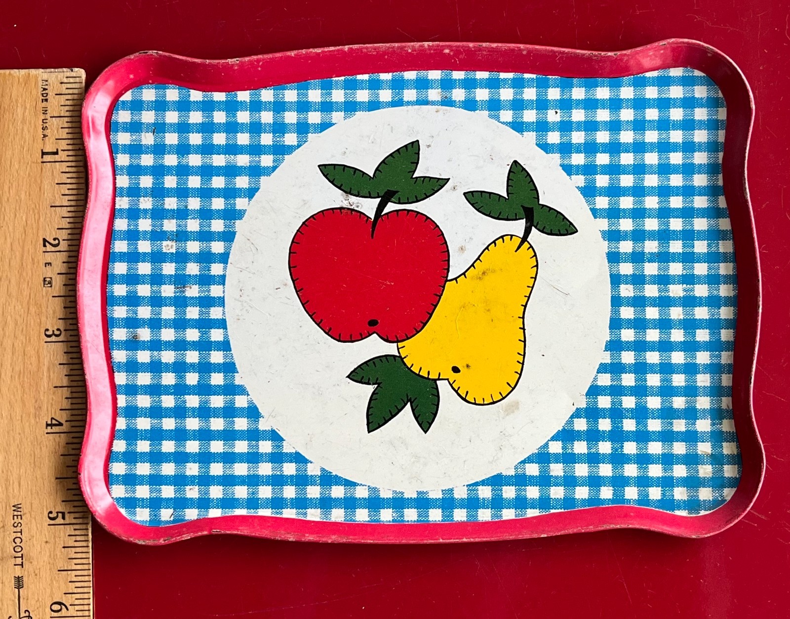 Vintage Ohio Art Co Tin Litho Child's Tea Set FRUIT APPLES PEARS 13 Pieces