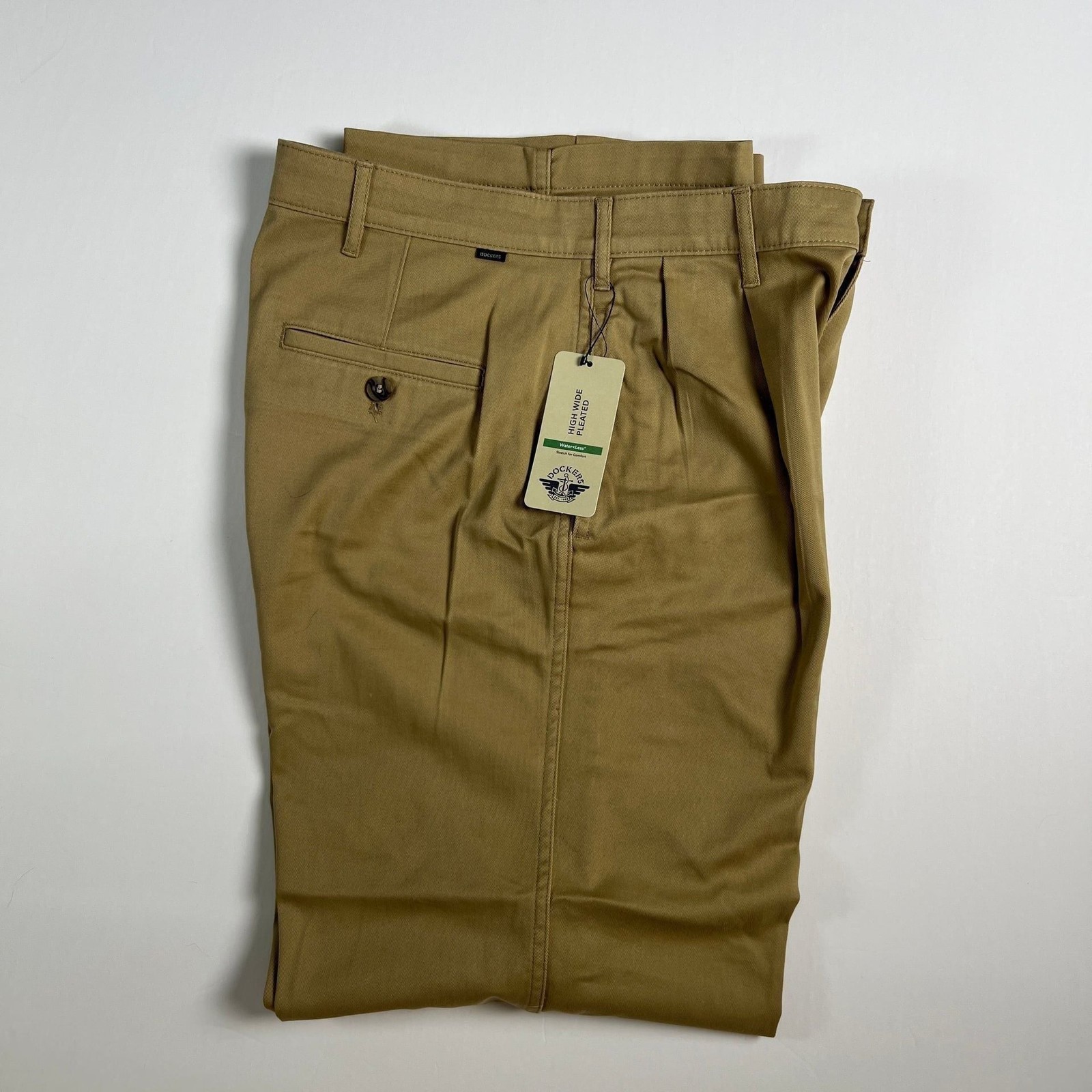 как выглядит Dockers Mens Signature Iron Free High Rise Relaxed Fit Pleated Khaki Pants фото