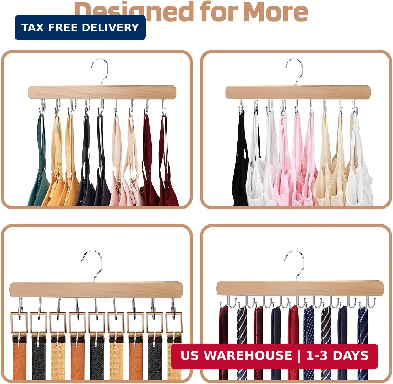 2 Pack Bra Hanger for Closet Organizer, Premium Wooden Tank Top Hangers with 36
