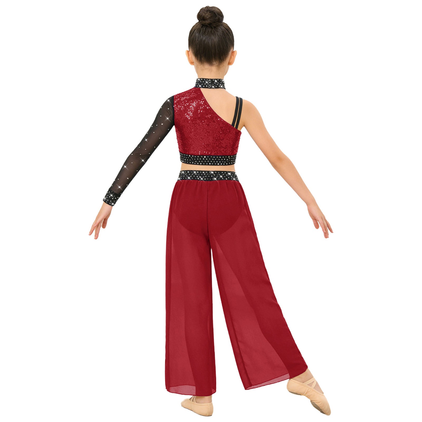 как выглядит Kids Girls Dancewear Split Flowy Outfit Color Block Costume Glittery Dance Rave фото