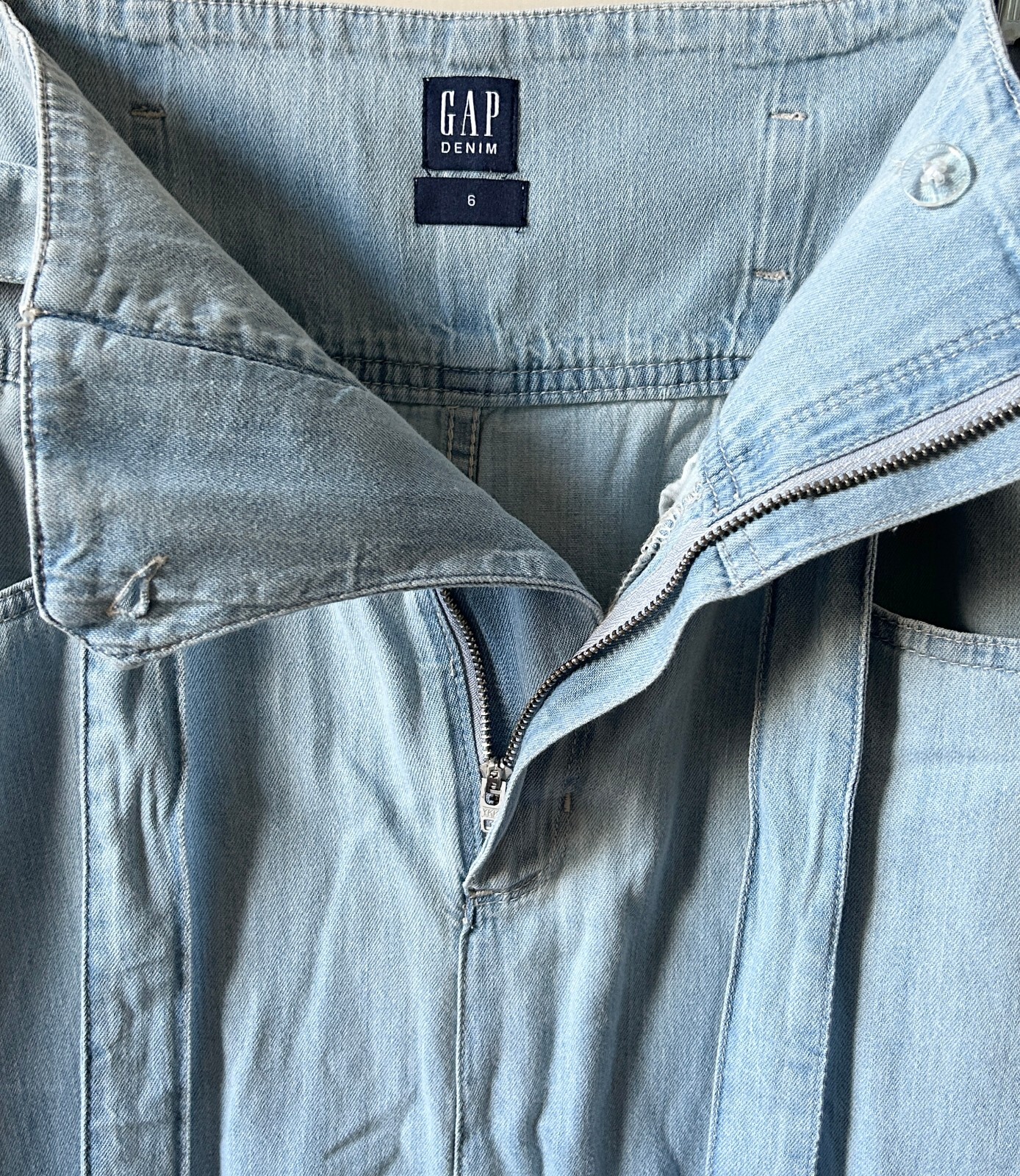 Vintage GAP Denim Skirt Modesty Belted Midi A Line Pocket Cotton Blue Y2K Size 6