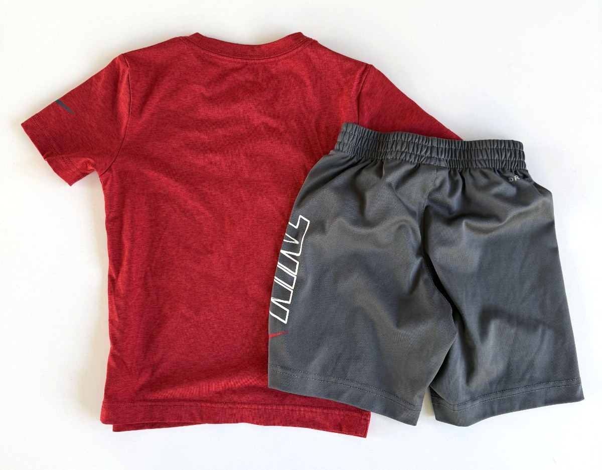 как выглядит Nike Boys Shorts and Shirt Set Red/Grey Logo Size 4-5 Years фото