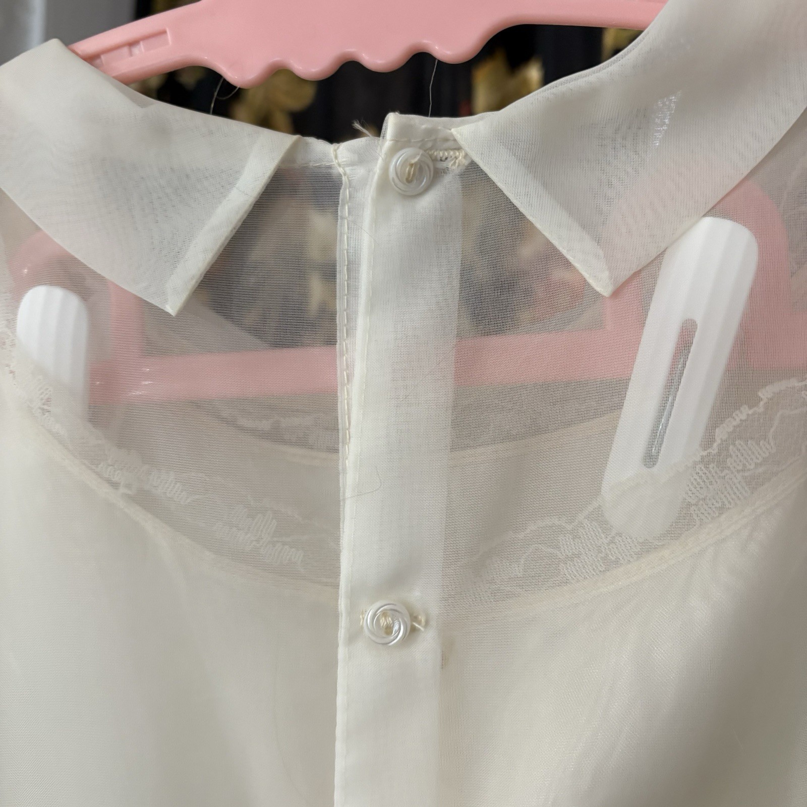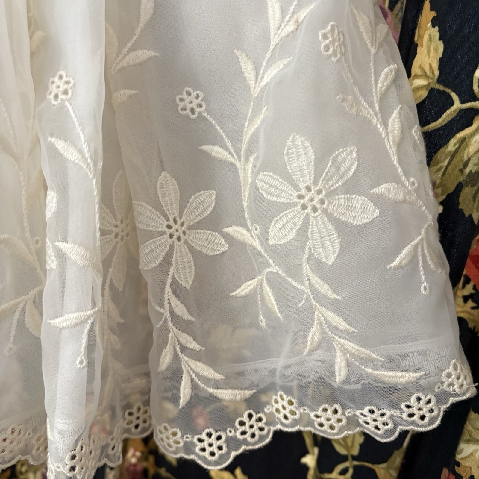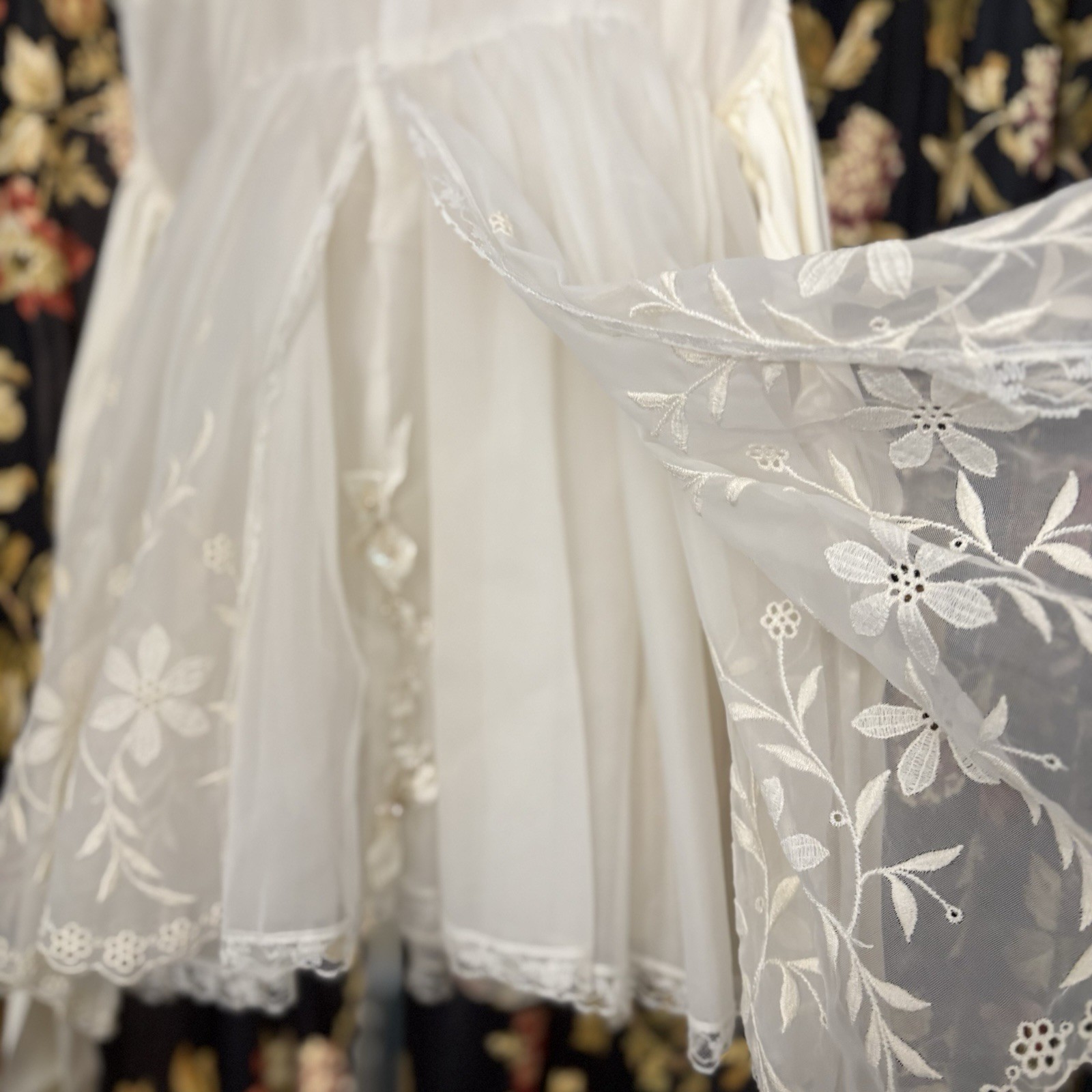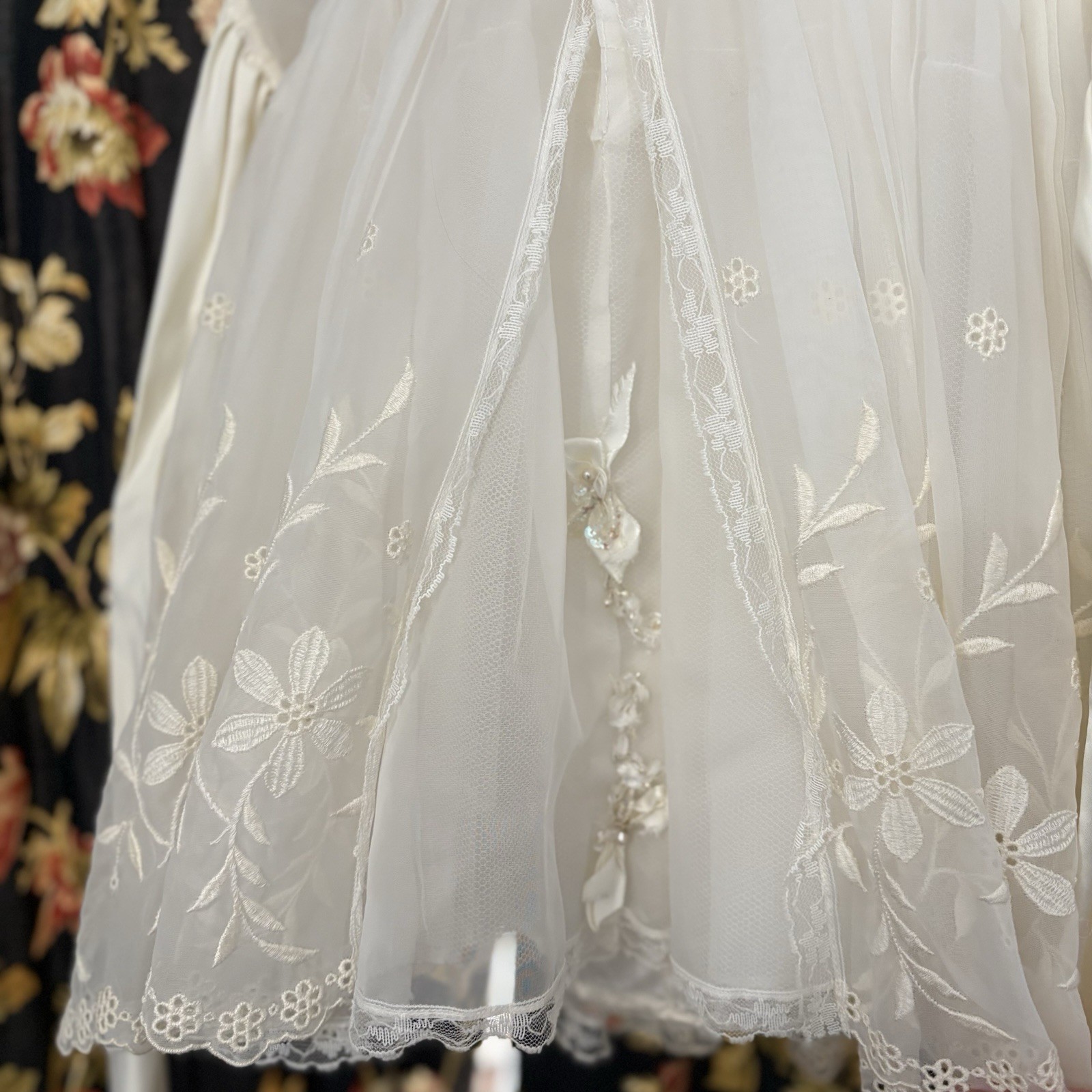 Vintage Flower Girl Communion Dress Lace Ivory Chiffon Apron Puff Sleeves Slip