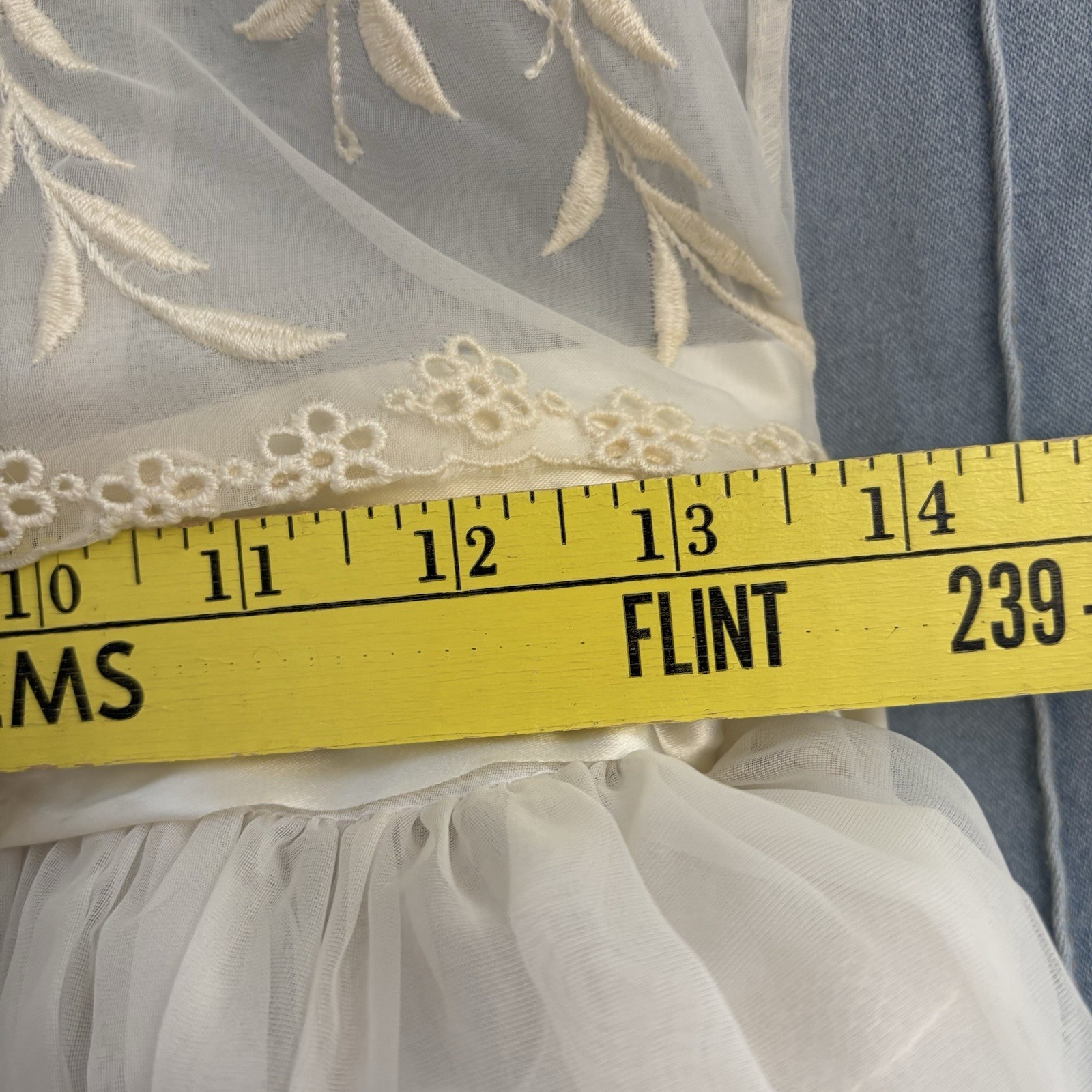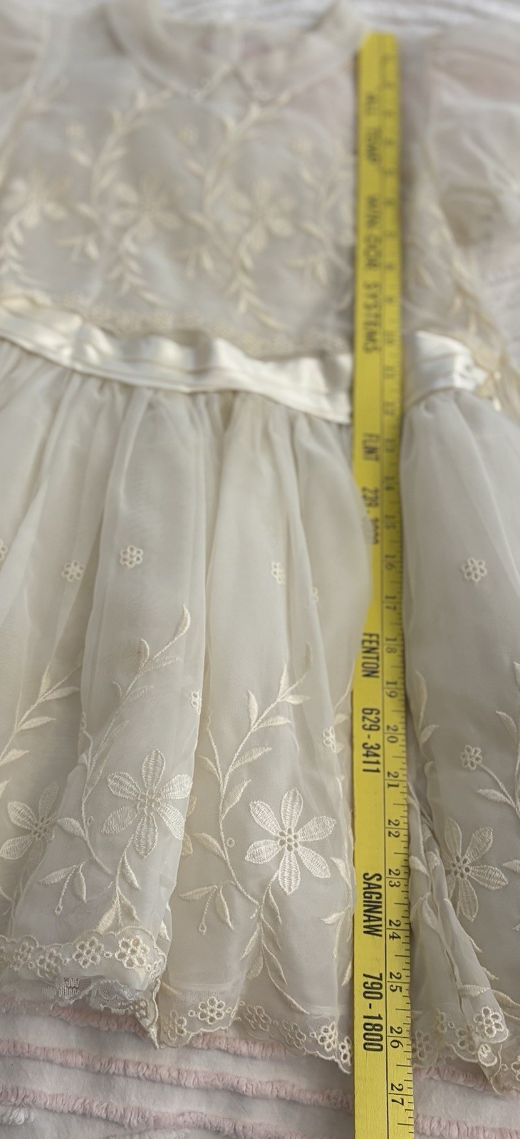 как выглядит Vintage Flower Girl Communion Dress Lace Ivory Chiffon Apron Puff Sleeves Slip фото