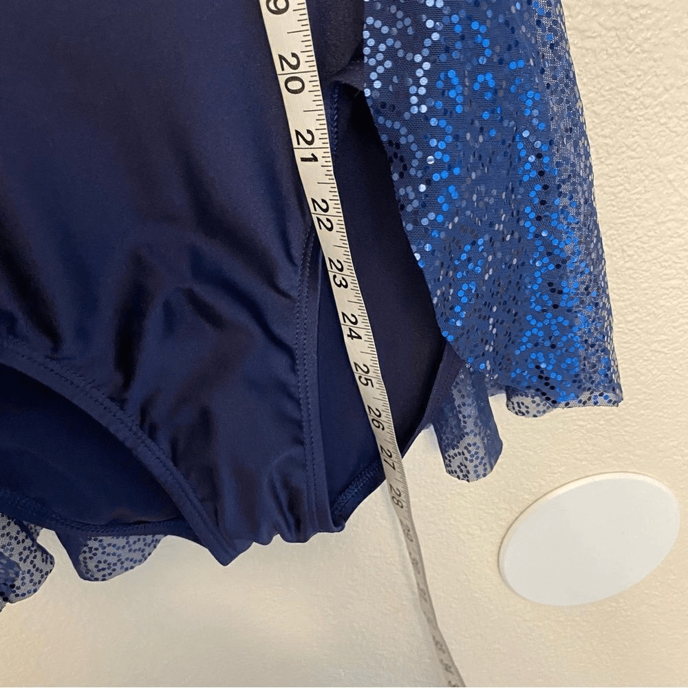 как выглядит Double platinum dance Costume leotard blue sequin dress N7799P -adult M фото