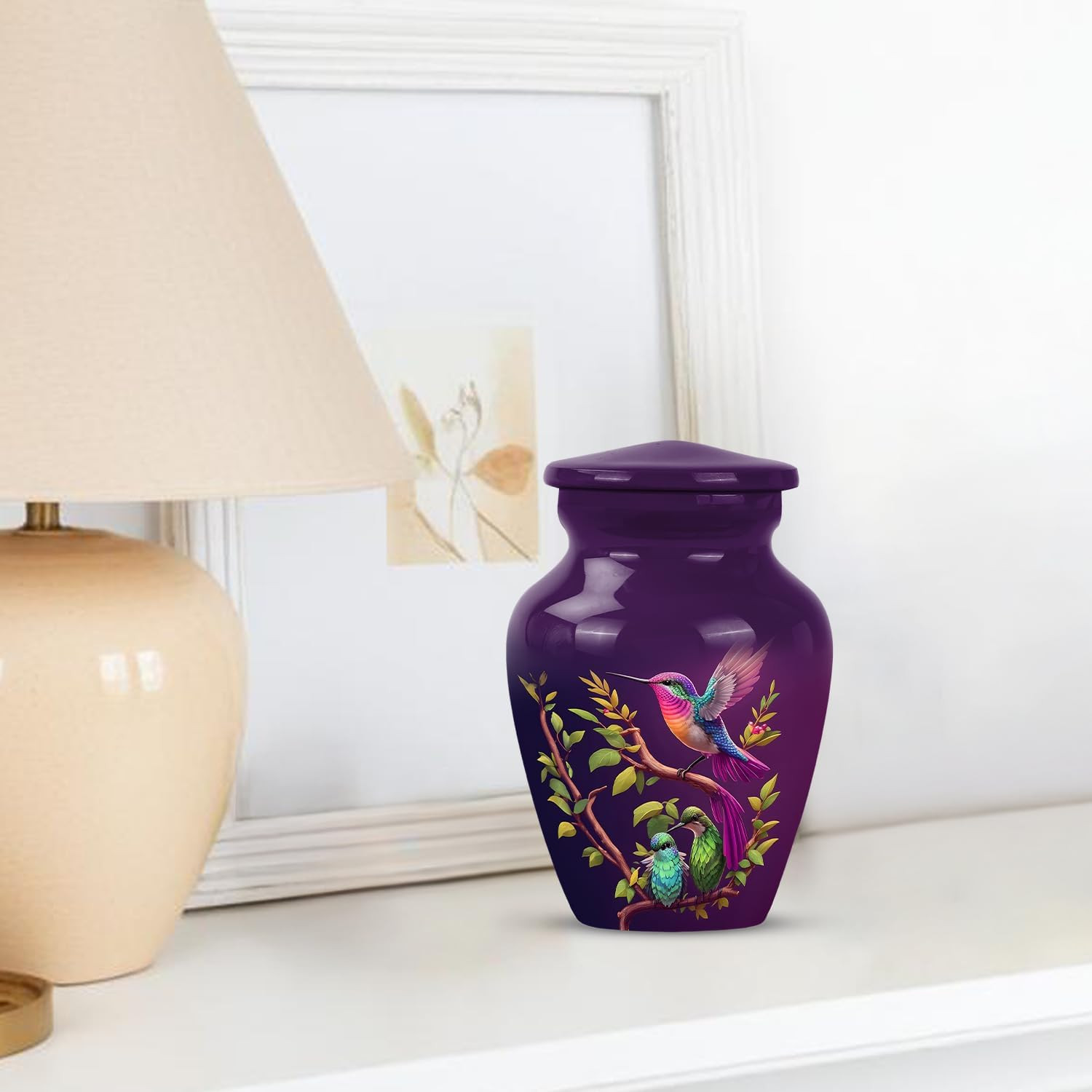 • Purple Humming Bird Urns for Human Ashes Adult Male Female - Small Keepsake Ur