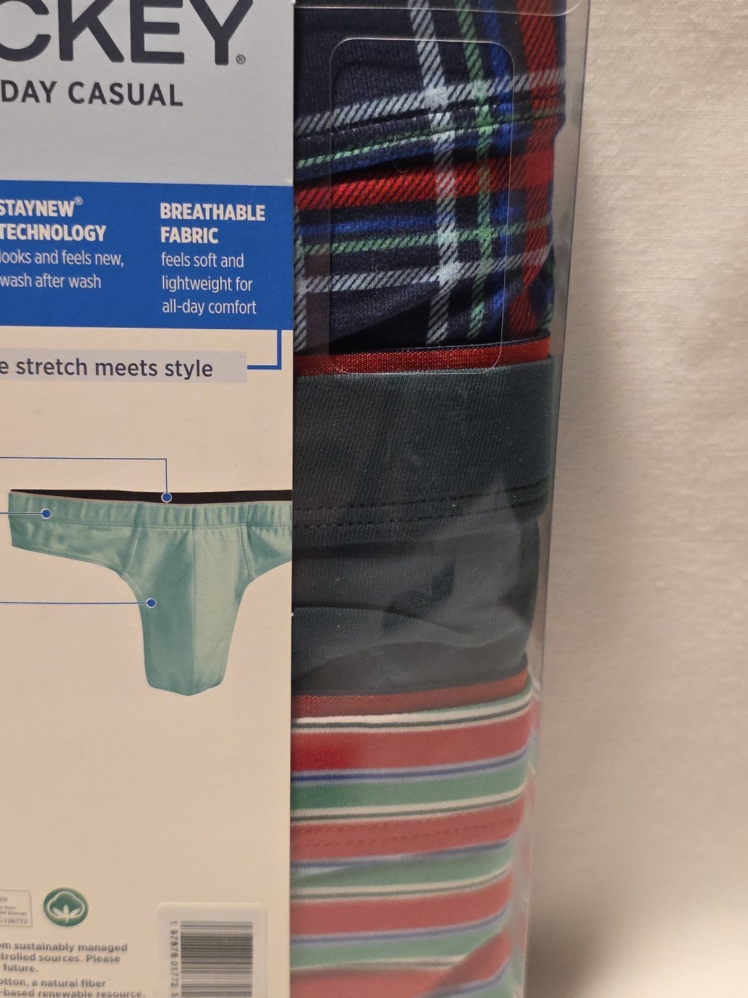 как выглядит NEW 2XL 44-46 Jockey Casual Cotton Stretch Thong 3-Pack Striped Solid Plaid Men фото