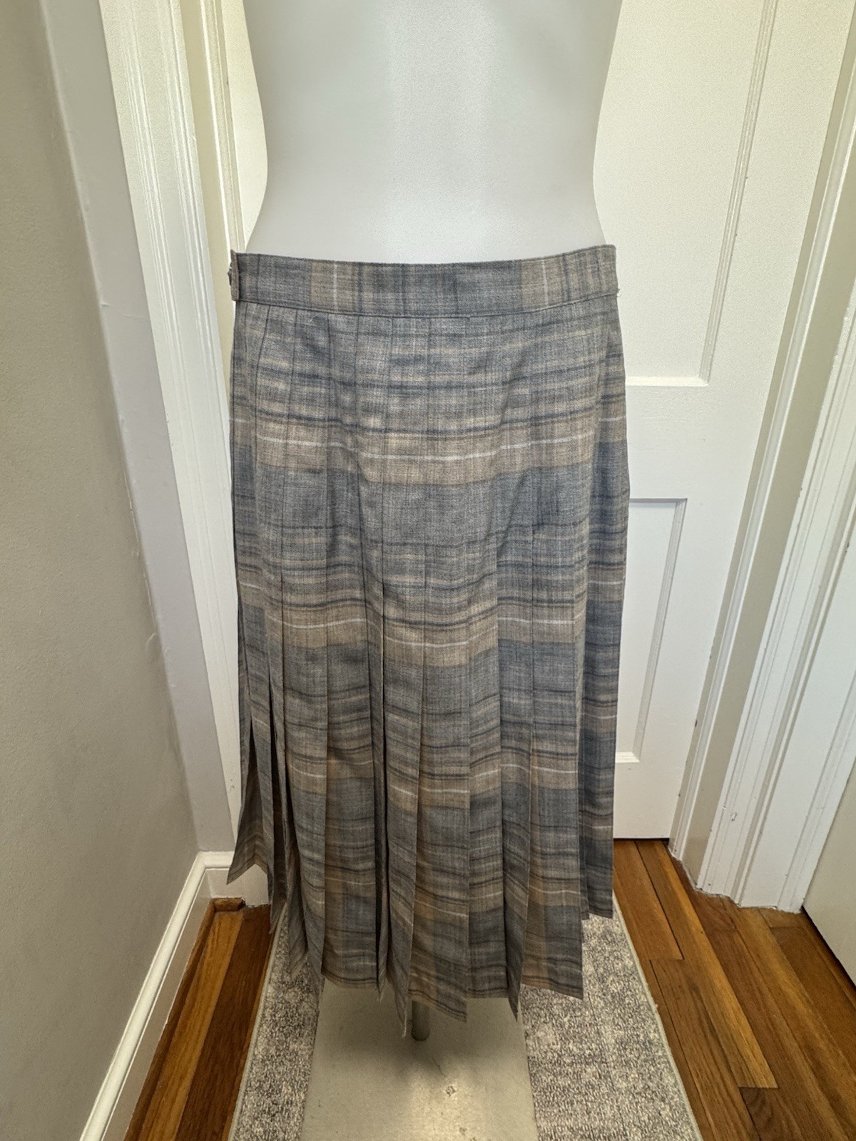 Vintage Pendleton 100 Virgin Wool Pleated Midi Skirt Plaid Grey Tan Sz 10 USA