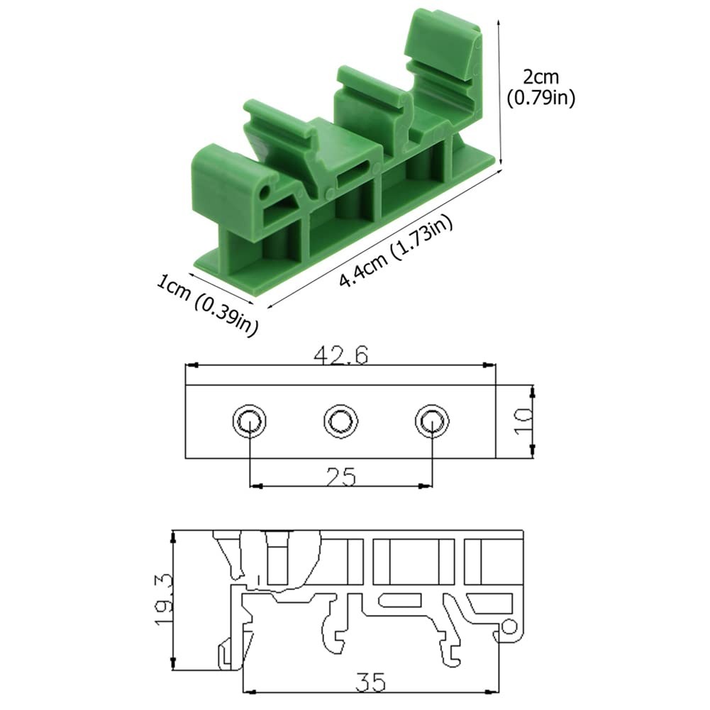 20Sets C45 DIN Rail PCB Mounting Green Bracket Holder Carrier Clips for Width
