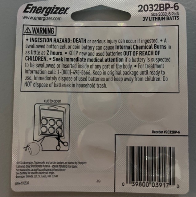 2 Packs of Energizer 2032 Batteries 6 Pack , 3V Lithium Coin Batteries