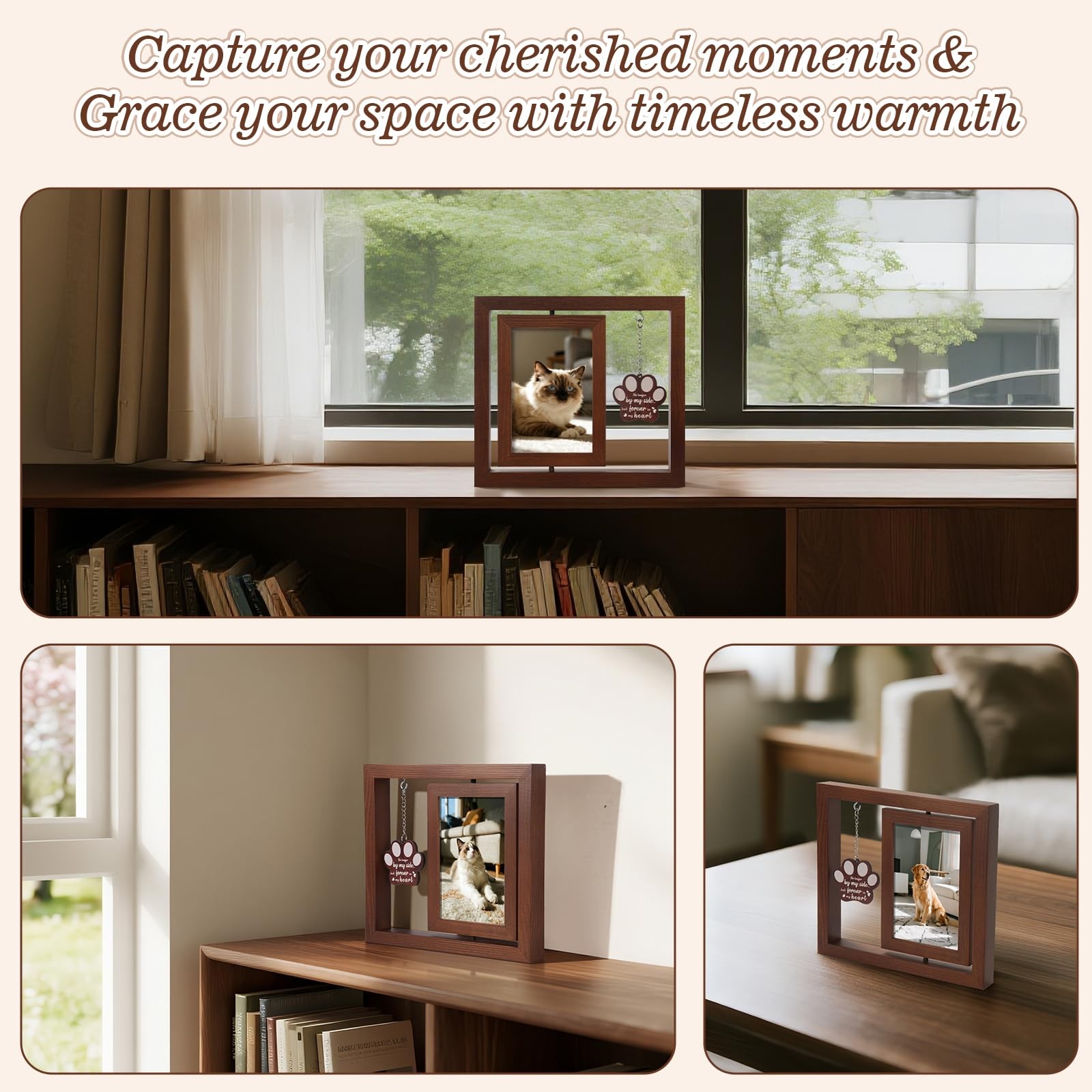 Dog Memorial Gifts for Loss of Dog, Rotating Wooden Picture Frame 4x6, Double...