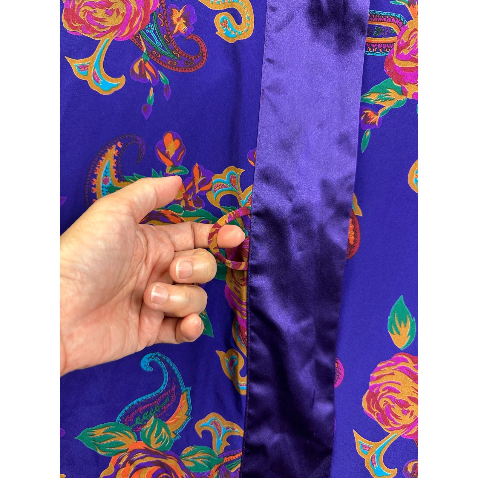 Vintage Victorias Secret Gold Label Purple Floral Paisley Satin Kimono Robe OSFA