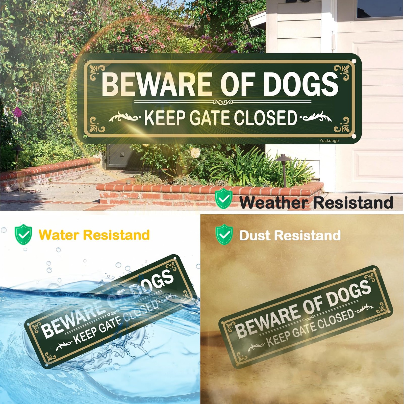 2 PCS Beware Of Dog Keep Gate Closed Sign 10x3 Inch Rust Free Aluminum Metal