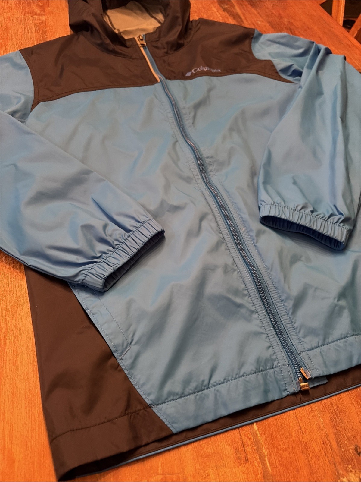 как выглядит Columbia Lightweight Blue Rain jacket Hooded Youth Size L фото