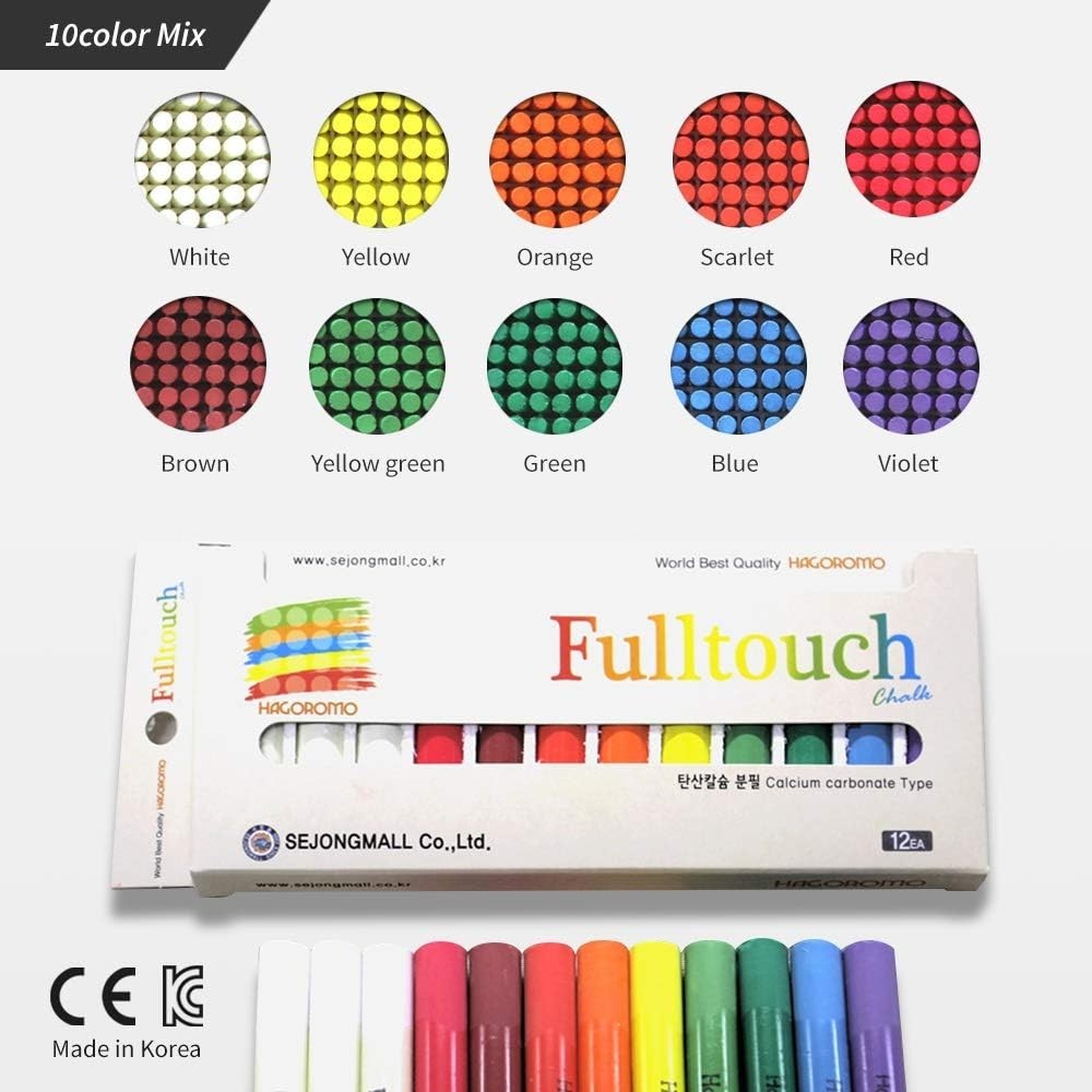 Dustless Non-Toxic Color Chalk 12pc Set Smooth Erasable Blackboard Art Supplies