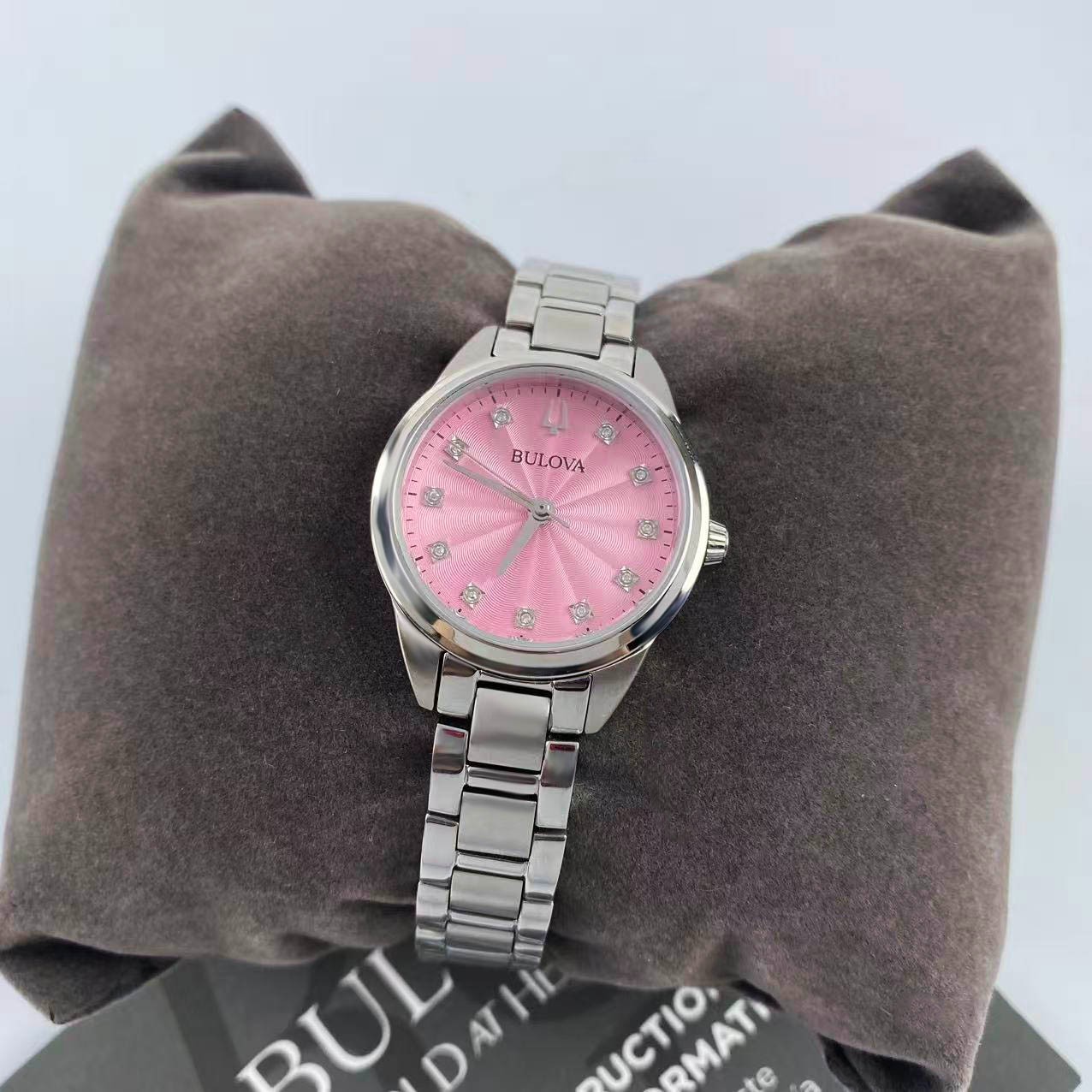 Bulova Sutton Women's Quartz Watch Pink Diamond Dial Stainless Steel 96P249 28mm