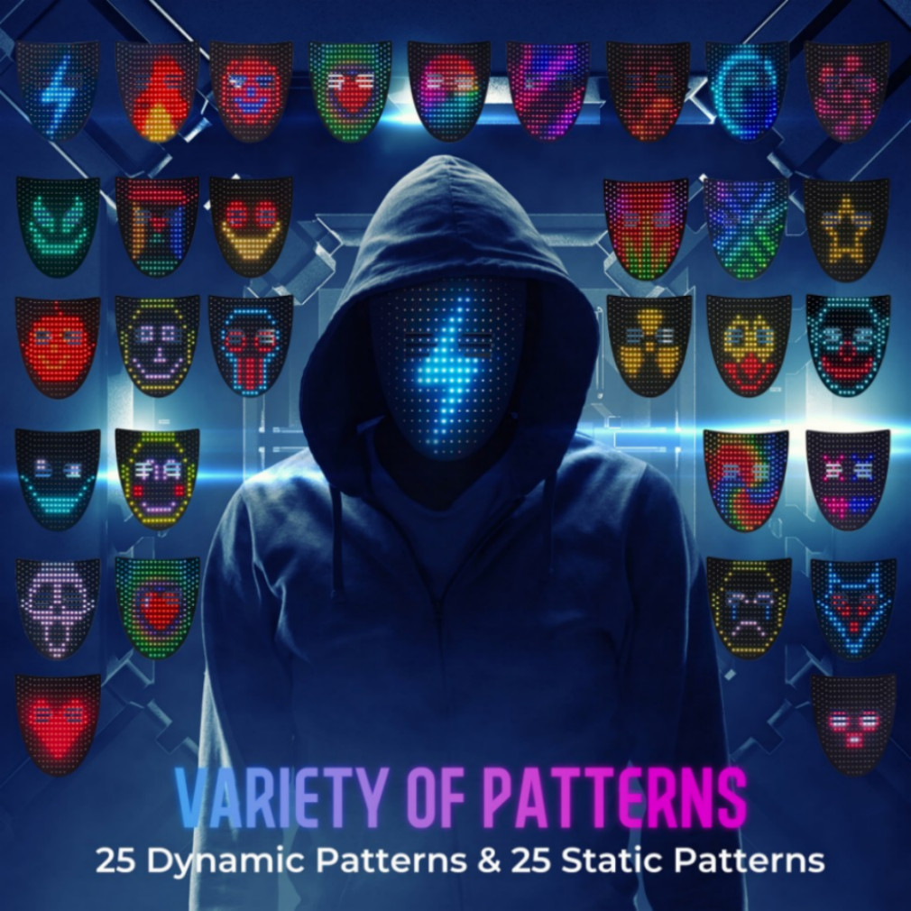 как выглядит LED Mask with Gesture Sensing, Light up mask with 50 Pattern Display for Men/... фото