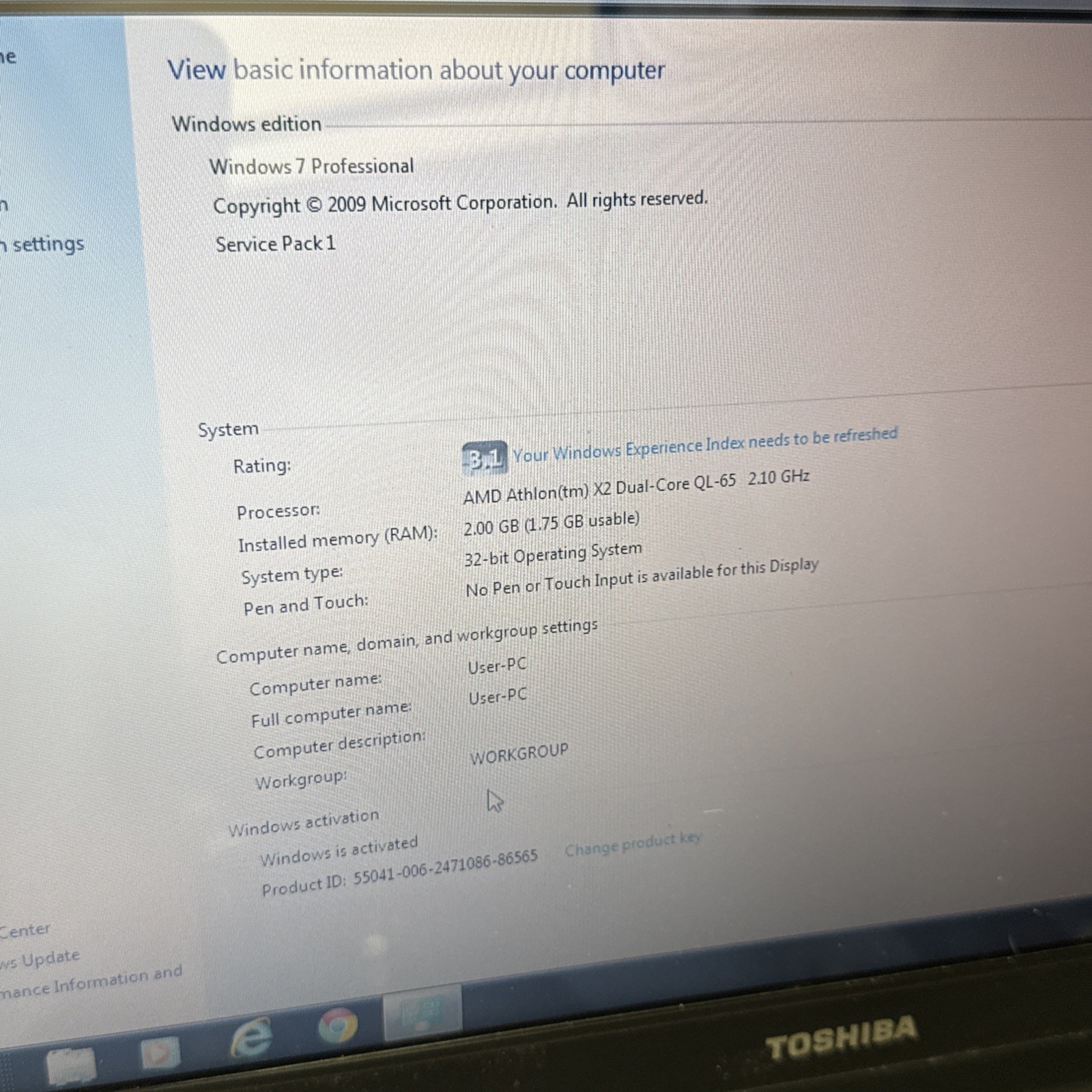 Toshiba Satellite L505D S5965 15.6 AMD AthlonX2 QL-65 2GB RAM 250GB HDD - As Is