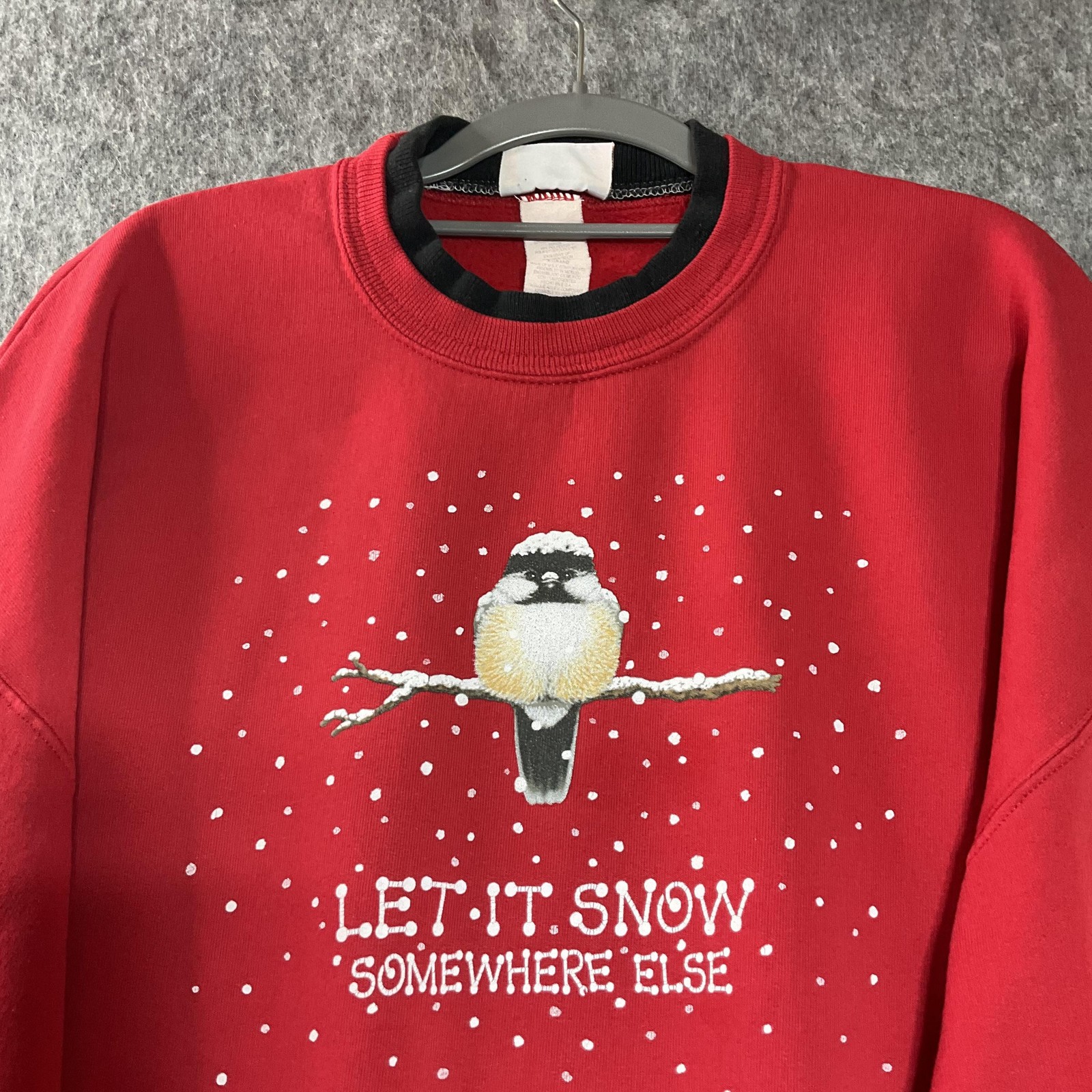 как выглядит Vintage Morning Sun Sweatshirt Womens XL Red Let It Snow Bird Christmas 90s фото