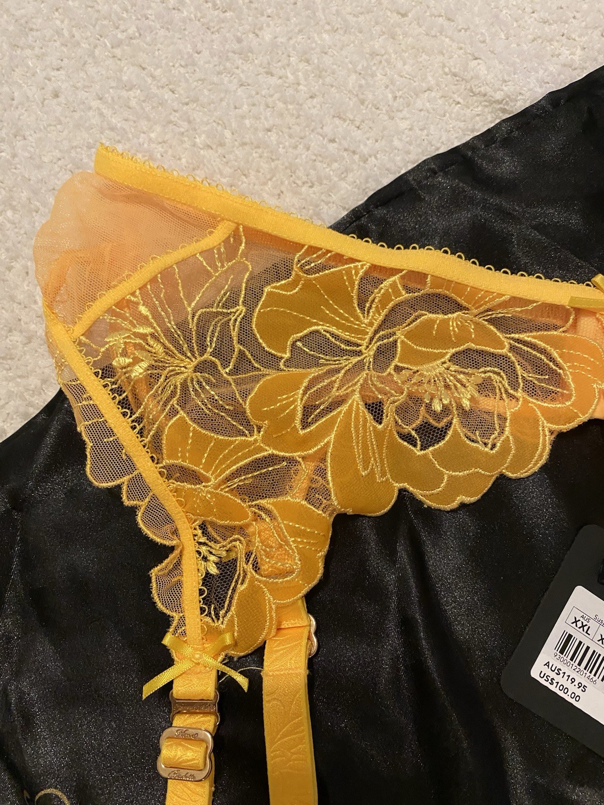 как выглядит NWT Honey Birdette MIA Yellow Floral Lace Garter Thong Set Size XXL фото