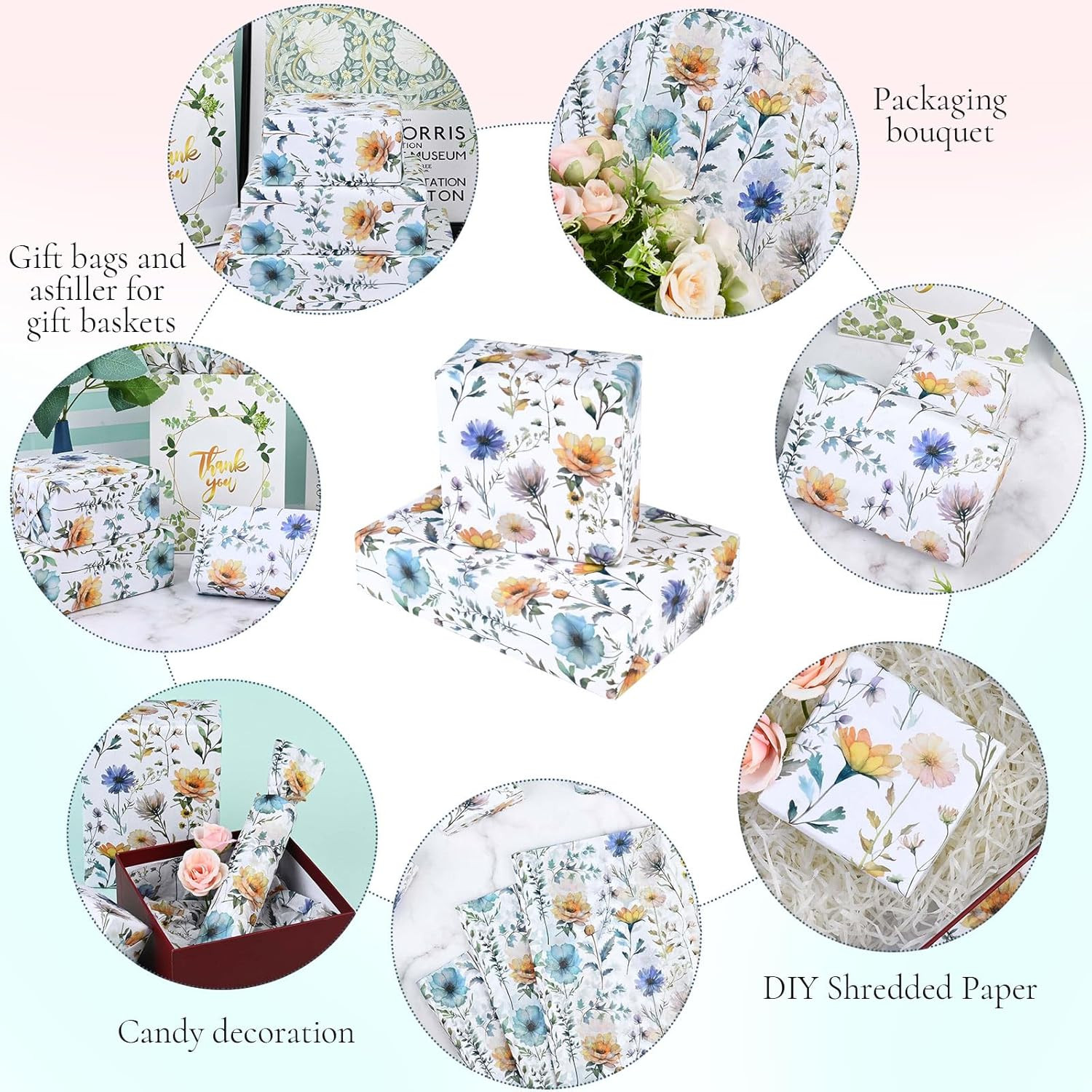 100 Sheets 20 14 Inches Wildflowers Tissue Paper Blue Floral Tissue Paper for