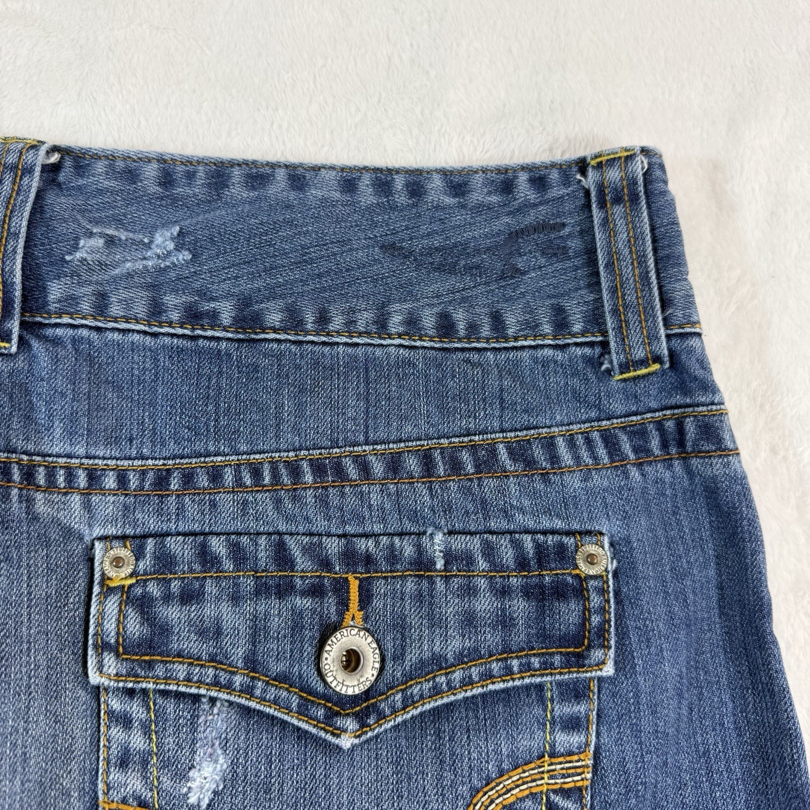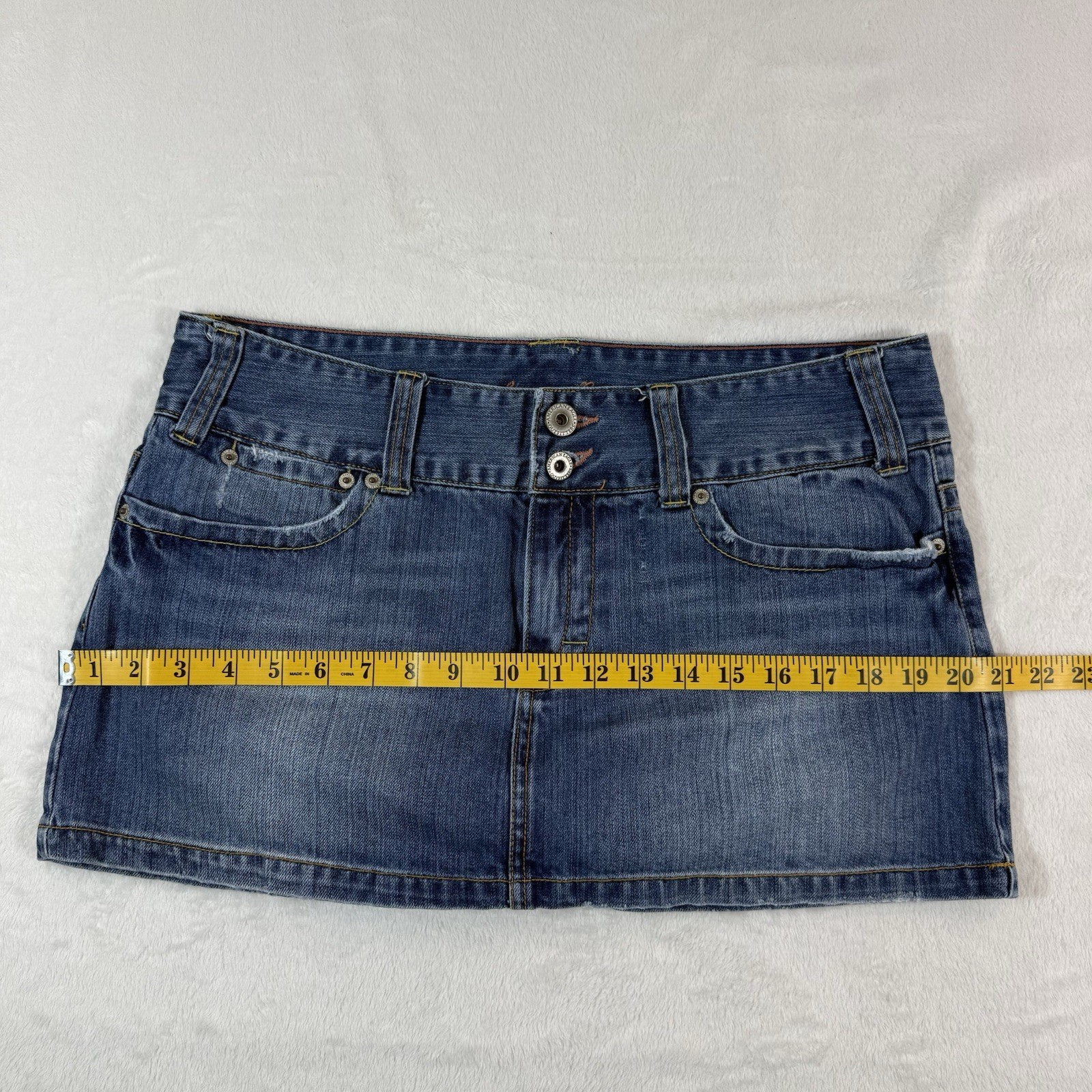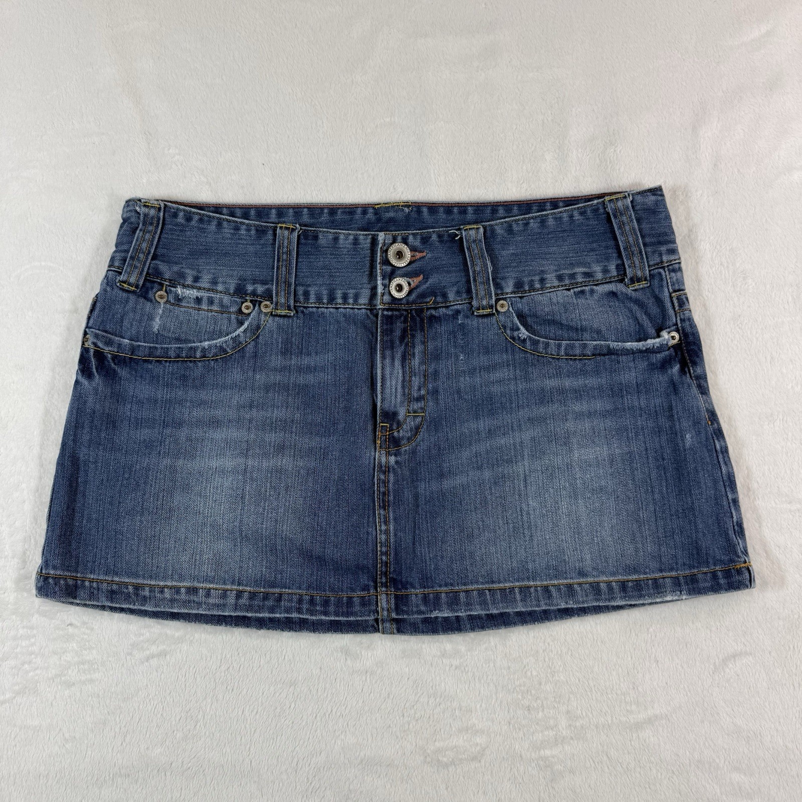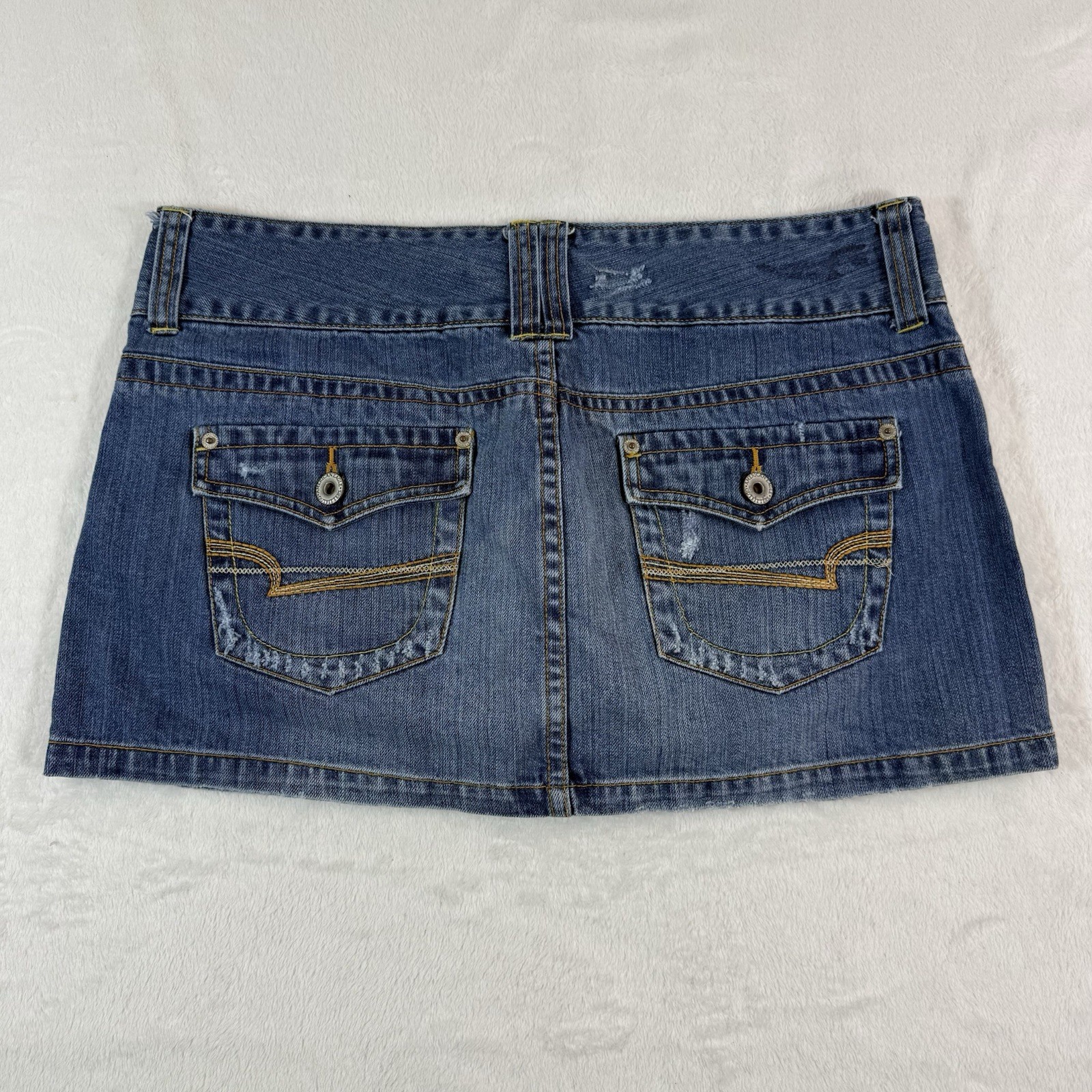 как выглядит VTG Y2K American Eagle Micro Mini Denim Jean Skirt Sz 12 Distressed Flap Pockets фото
