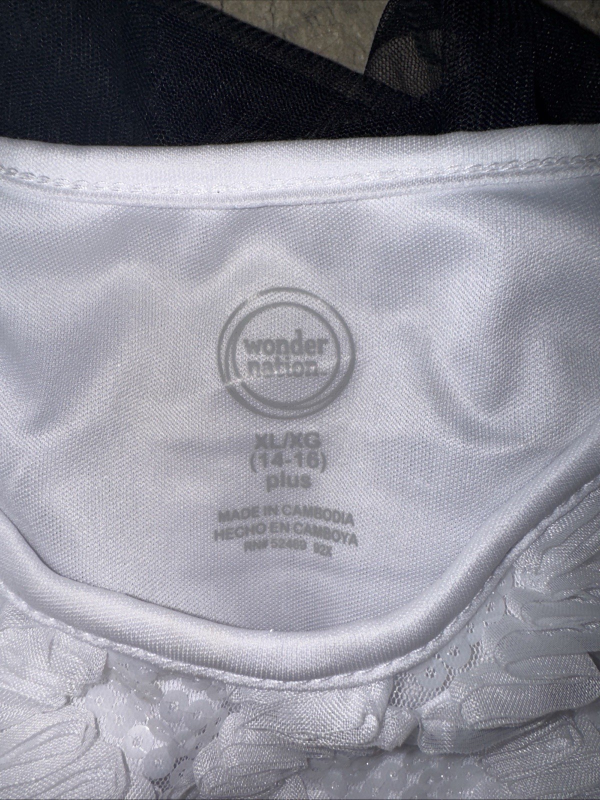 Wonder Nation Youth Girls White Sequin Black Layer Tulle dress Sz XL 14/16 nice
