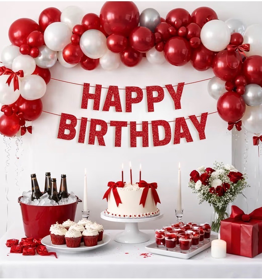 Red Glitter HAPPY BIRTHDAY Banner Sign - 8 Letters