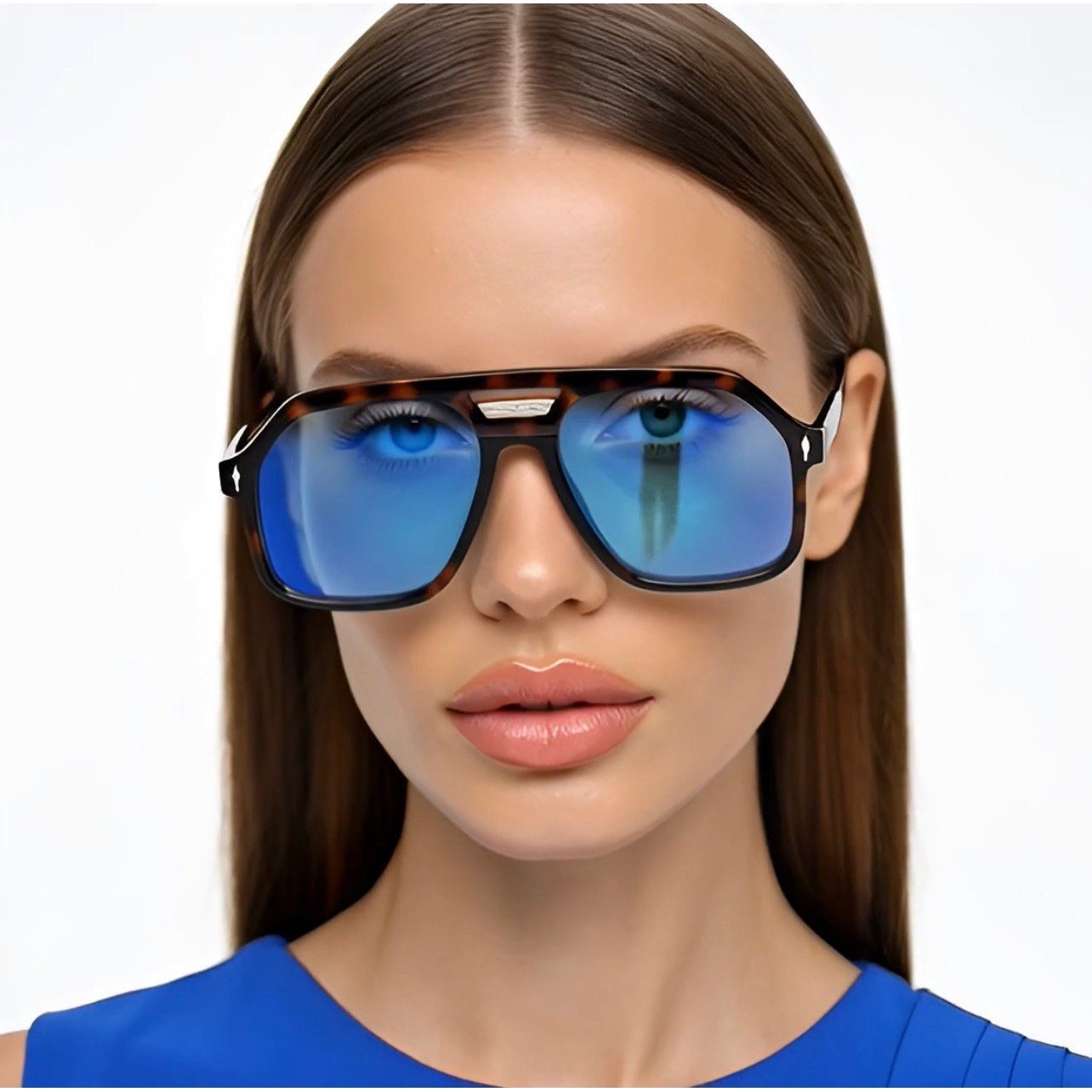 как выглядит Oversized Aviator Sunglasses Tortoiseshell Frame Light Blue Tint Lens Retro 70s фото