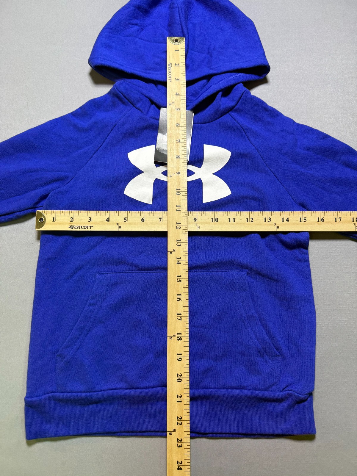 как выглядит NWT Under Armour Rival Fleece Hoodie Boys Youth Small Blue Logo Ribbed Cuffs фото