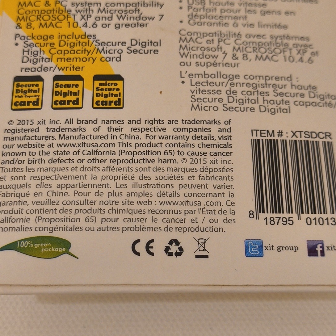 как выглядит PHOTO Digital XIT SD, SDHC, MicroSD USB High Speed Memory Card Reader/writer фото