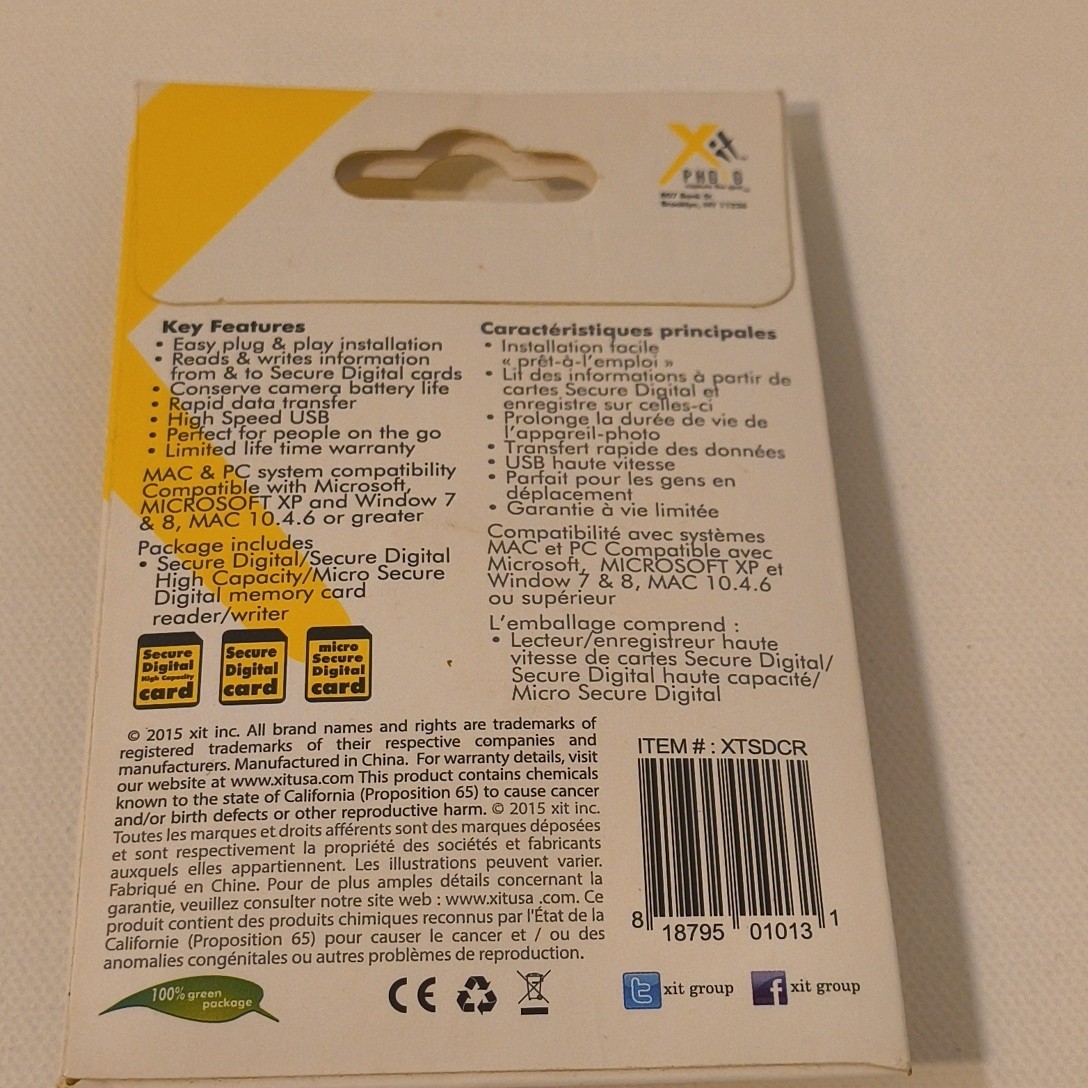 PHOTO Digital XIT SD, SDHC, MicroSD USB High Speed Memory Card Reader/writer