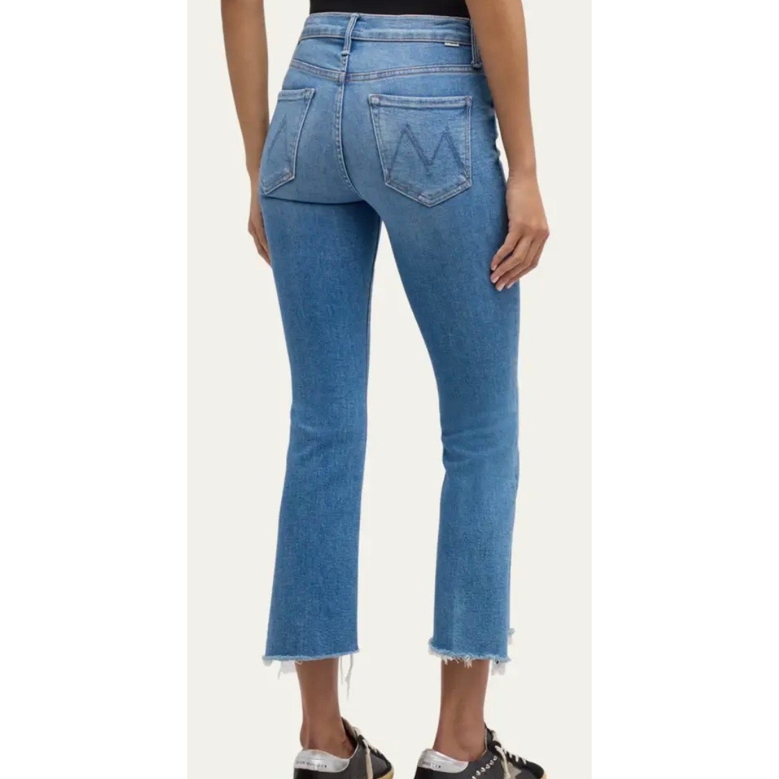 как выглядит Mother The Insider Crop Step Fray Jeans Light Blue High Rise Bootcut Size 27 фото