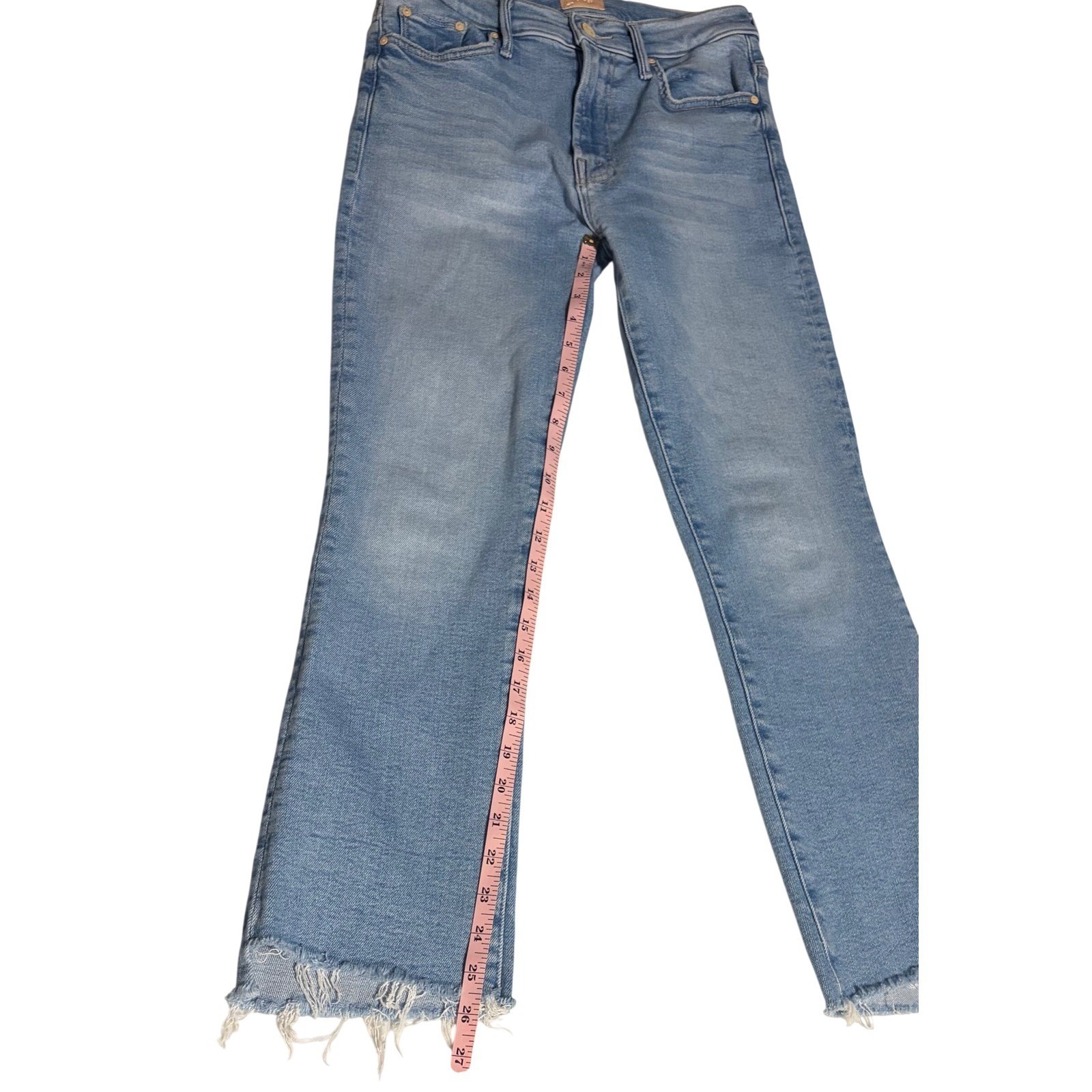 Mother The Insider Crop Step Fray Jeans Light Blue High Rise Bootcut Size 27