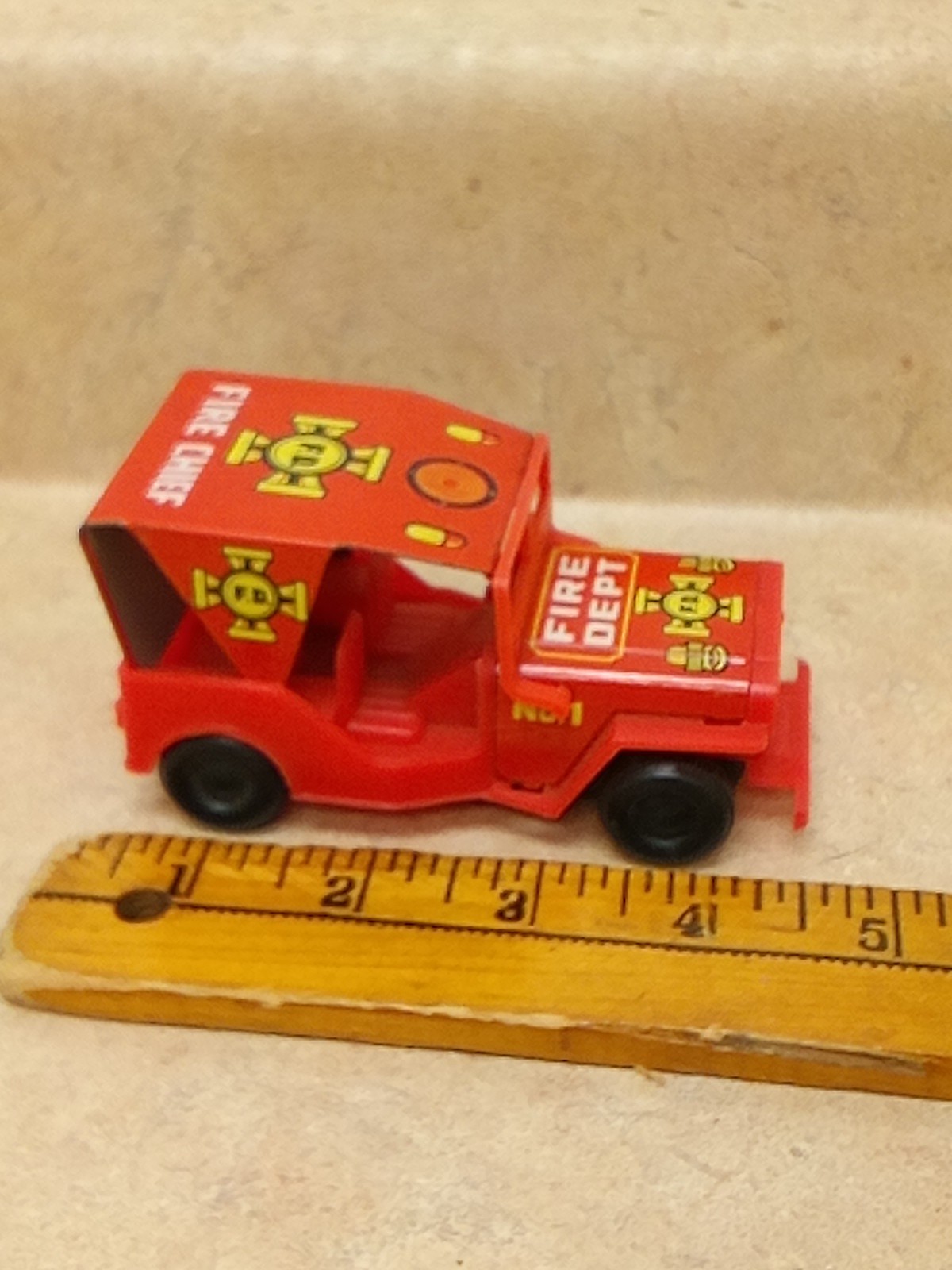 vtg Asahi Corp Tin Plastic Toy Fire Chief Jeep 5N-2330 Made in Japan FreeShip