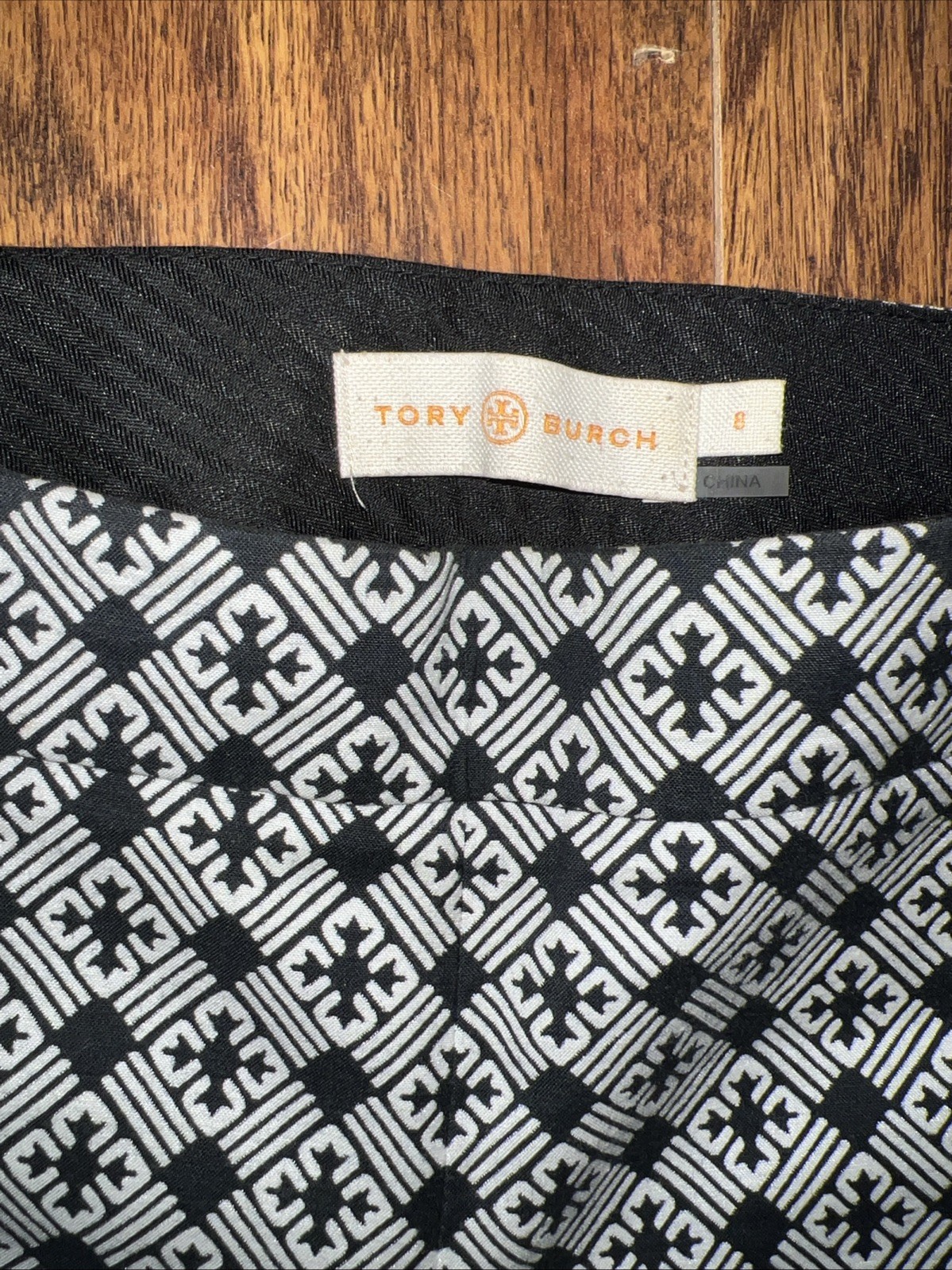 Women s Tory Burch Ivory Black Cotton Jacquard Callie Cropped Pants Sz 8