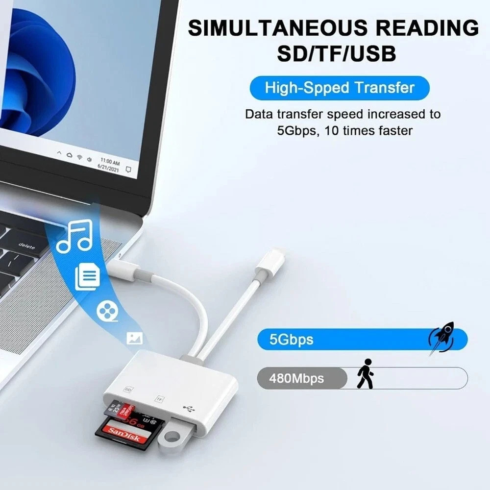 как выглядит SD Card Reader for IPhone IPad, Lightning and USB C Dual Port SD Card Adapter фото