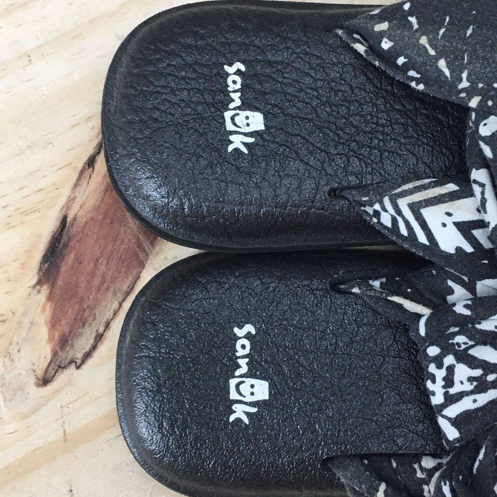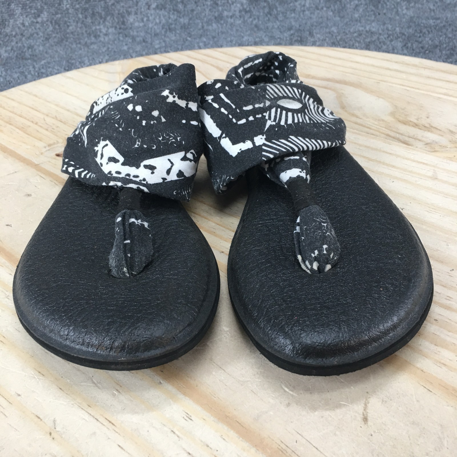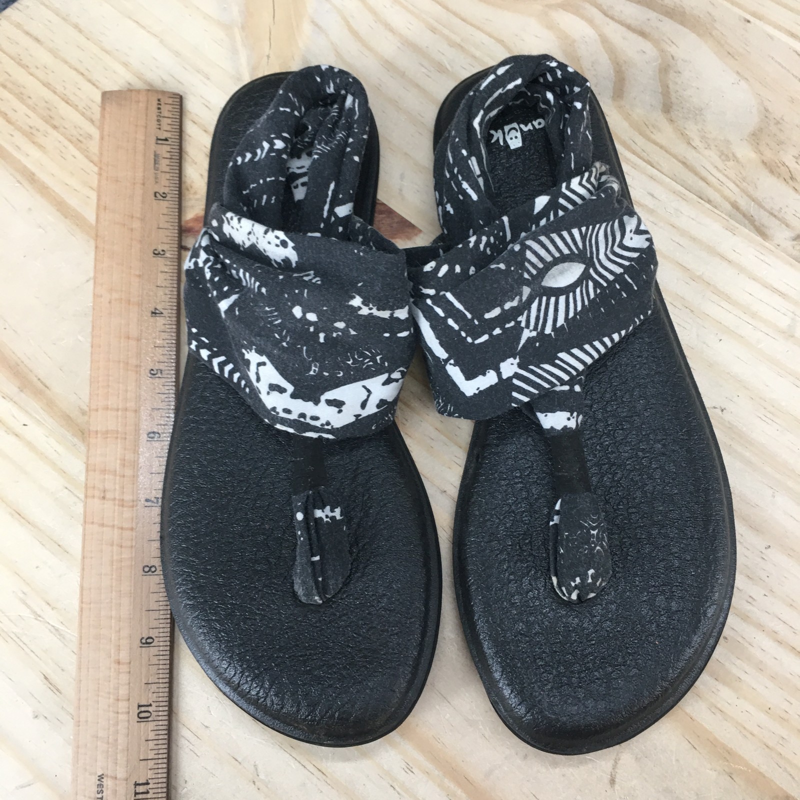 как выглядит Sanuk Sandals Womens 8 Black Thong Slingback Casual Comfort Yoga Mat Tribal фото