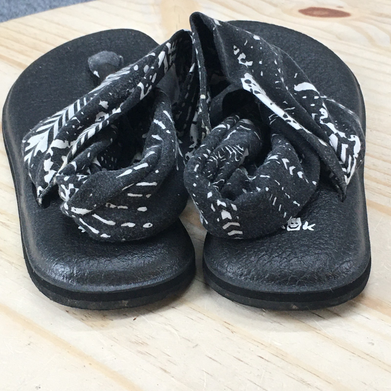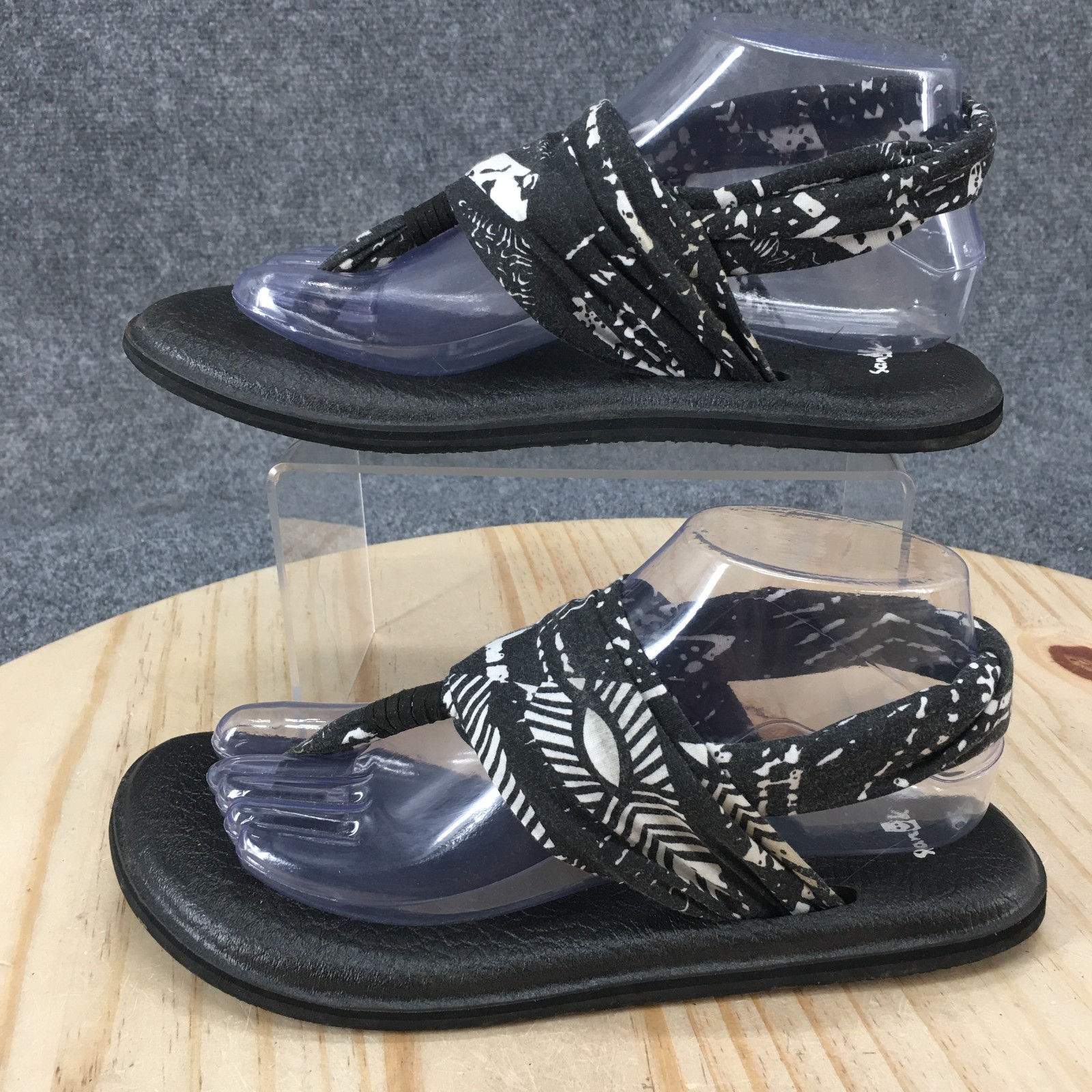 Sanuk Sandals Womens 8 Black Thong Slingback Casual Comfort Yoga Mat Tribal