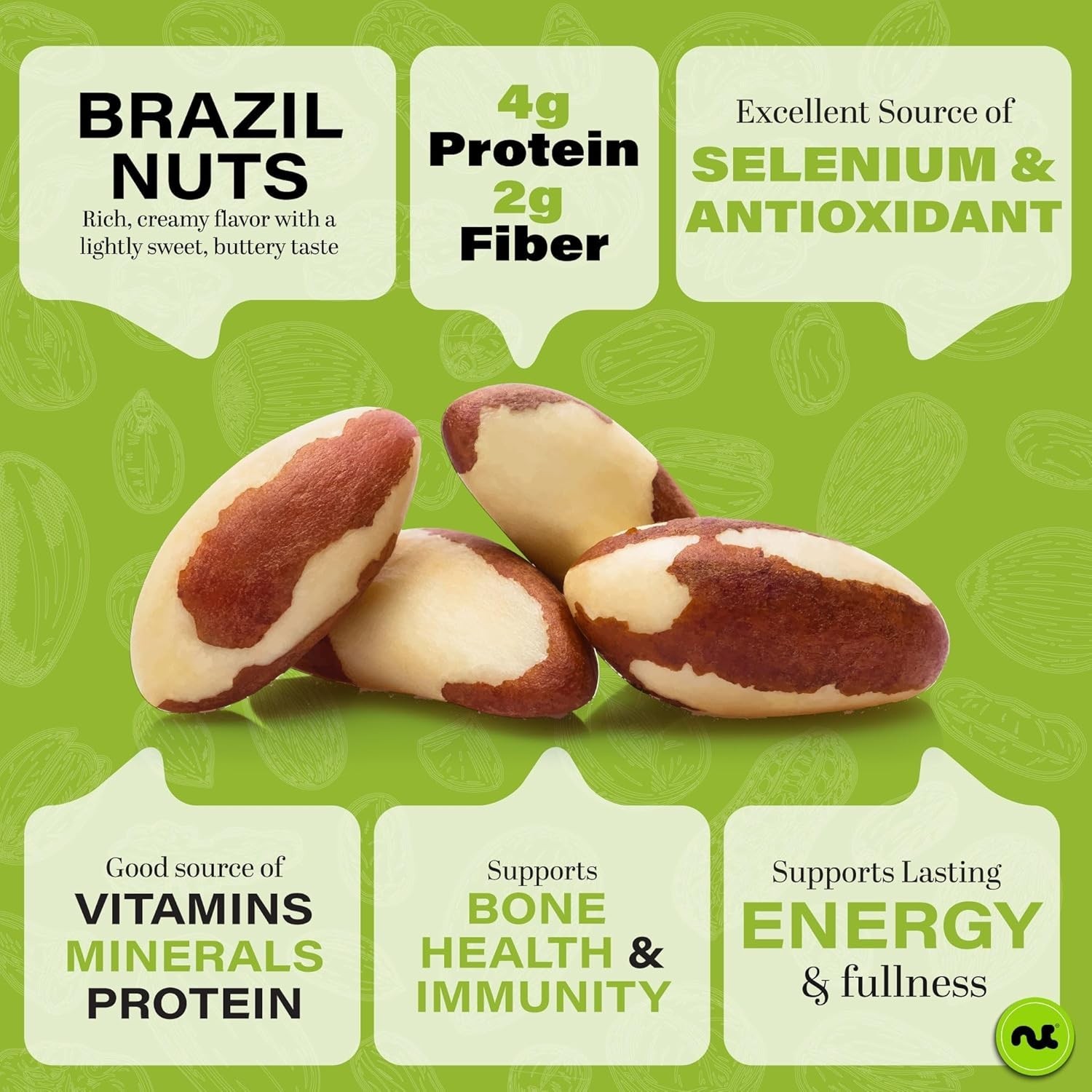 • Raw Brazil Nuts, Unsalted, No Shell, Whole, 24oz - 1.5 LB Packed Fresh in Reseal